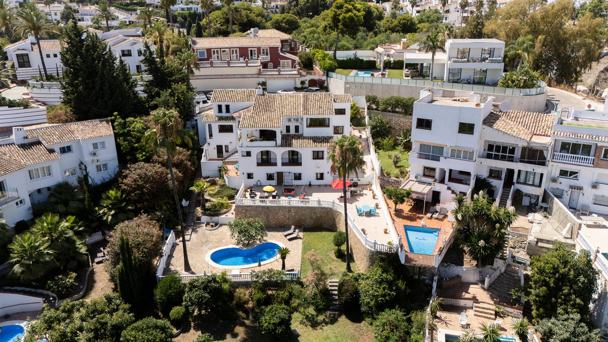 Situated in the heart of Torremuelle, one of Benalmádena's most exclusive and tranquil residential enclaves, this exceptional Andalusian-style villa blends traditional charm with refined modern comfort. Offering 6 spacious bedrooms, 5 bathrooms, and an independent guest apartment, the home is surrounded by mature gardens, expansive terraces, and panoramic views over the Mediterranean coastline and surrounding hills.