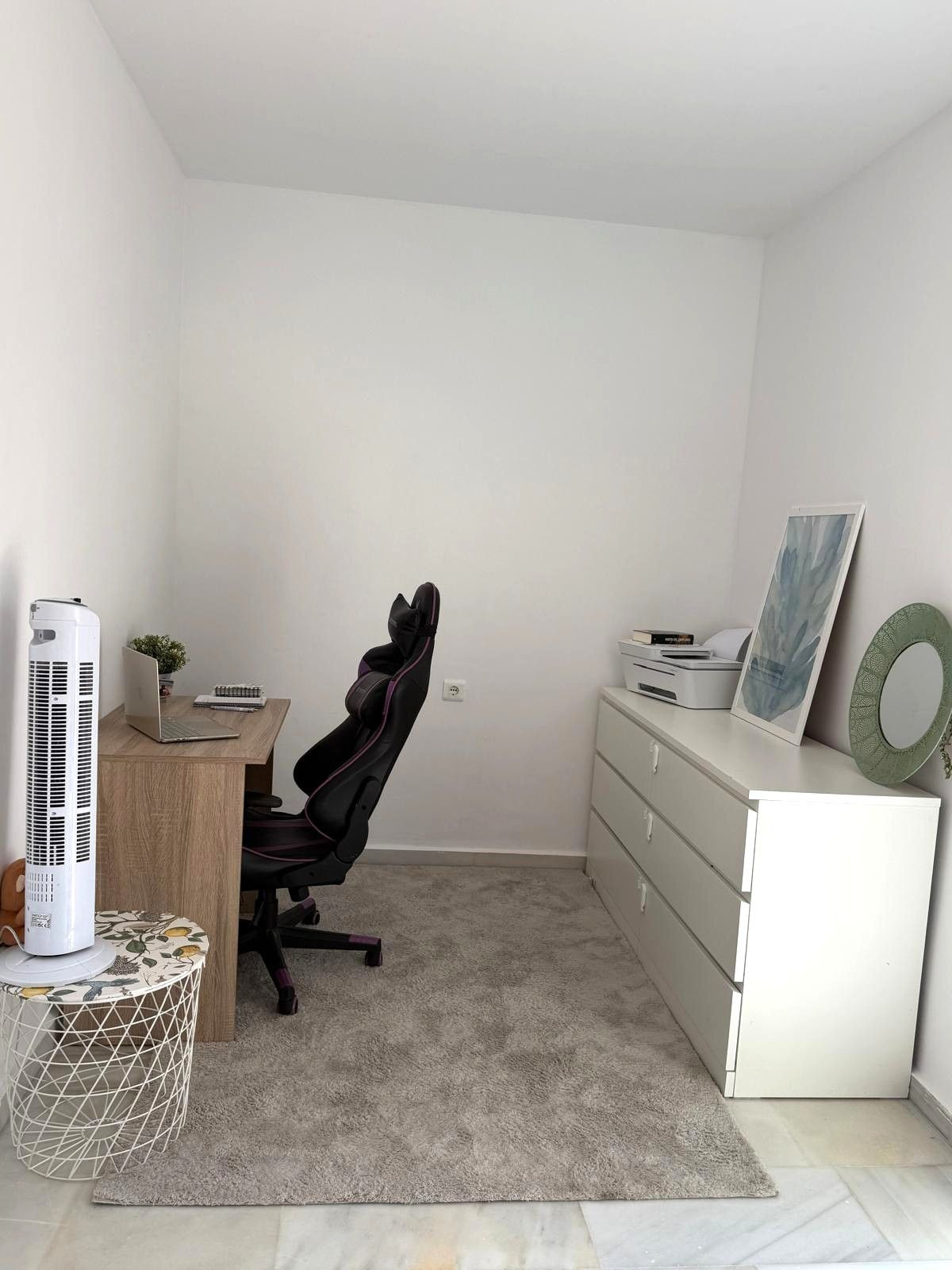 The third bedroom, currently used as an office, provides direct access to the patio and the communal areas.