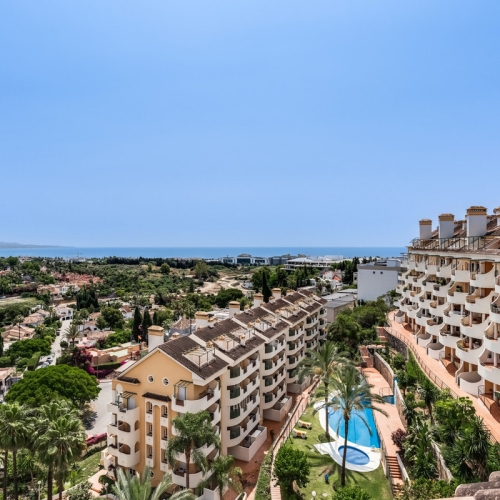 Beautiful, stylishly renovated 2-bedroom apartment in the charming, popular, typically Spanish urbanization of La Maestranza, in the heart of Nueva Andalucia.