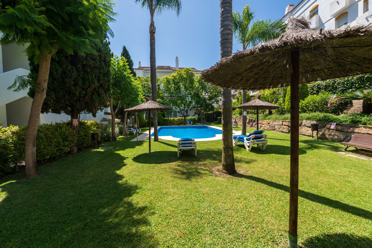 Wonderful ground floor apartment in Guadalmina Baja, San Pedro de Alcántara, with a garden area and covered terrace facing east to enjoy sunny mornings and cooler afternoons, located next to the golf course.