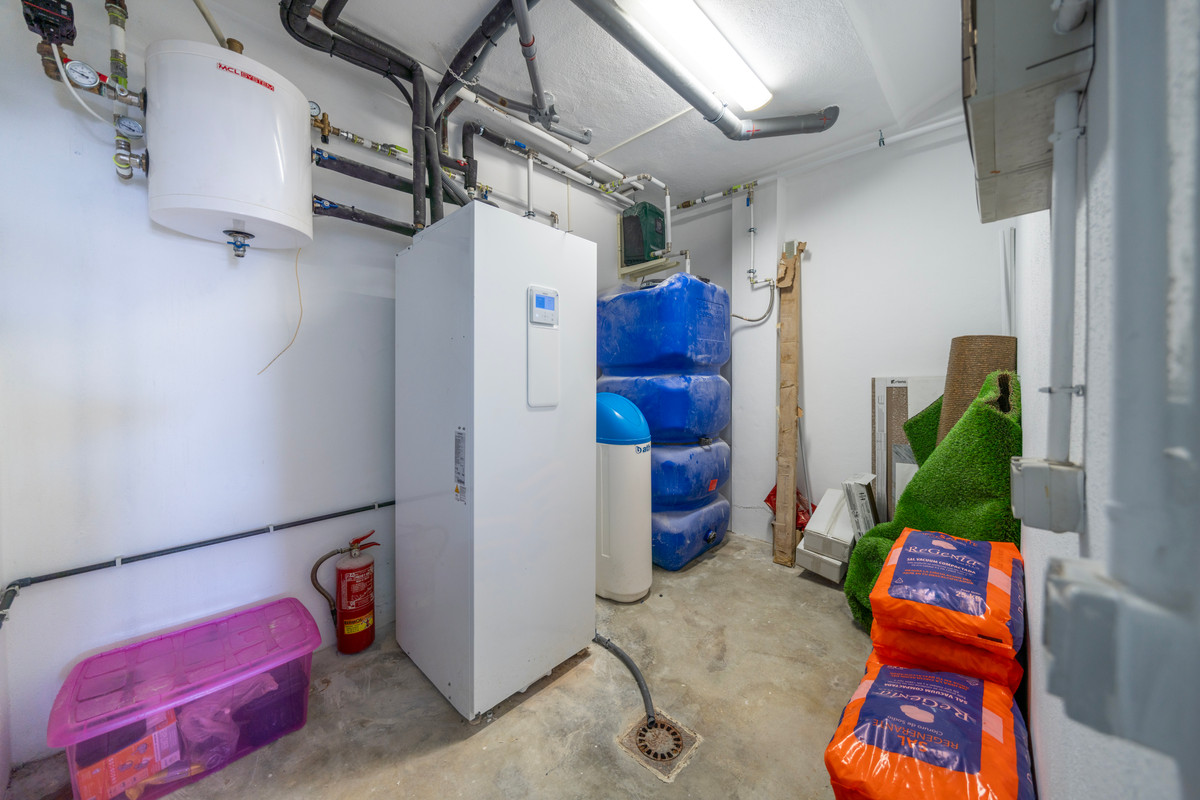 The basement level (169m2 built) offers a private garage for two vehicles, a versatile multipurpose room ideal as a playroom, cinema or lounge for the kids, and a technical storage area housing the aerothermal system, water softener, and main water tank.