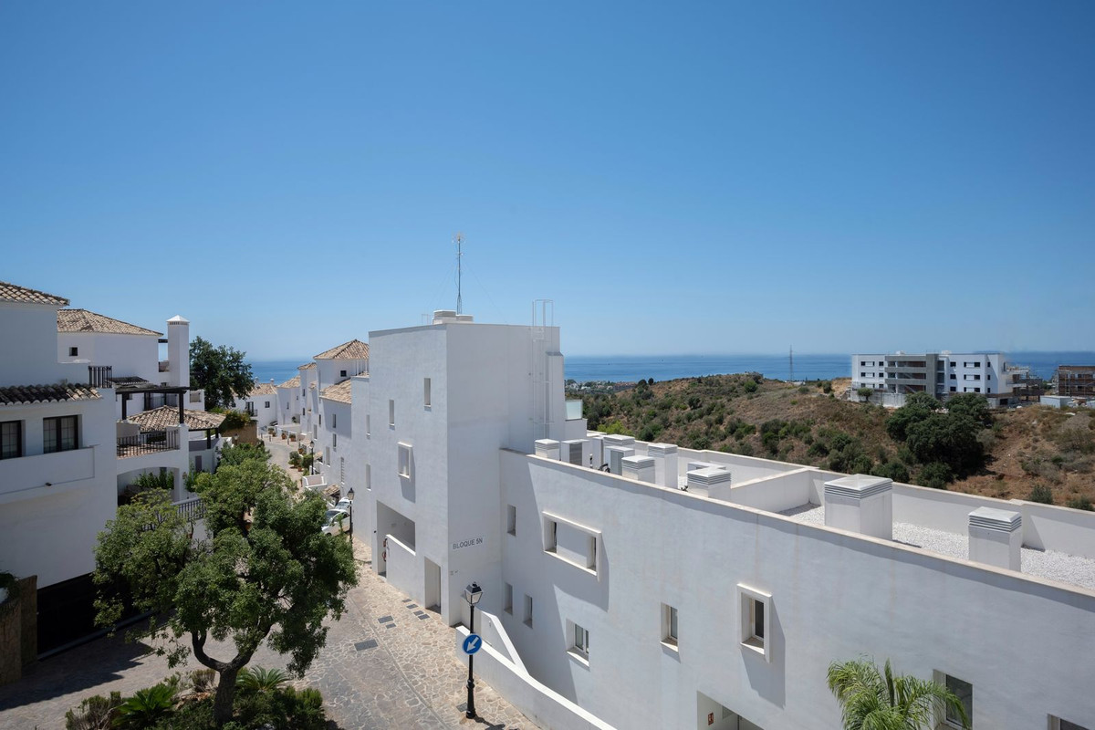The fantastic terrace spans the entire length of the floor and can be accessed from both the living room and kitchen. It fits a dining table, perfect for gatherings on a warm Andalusian summer evening, or a fun-filled family lunch. It is also a welcoming sitting area where one can enjoy a nice glass of wine, a relaxing conversation, and, of course, the fabulous views of the Mediterranean and the nearby hills. A little slice of paradise at home!