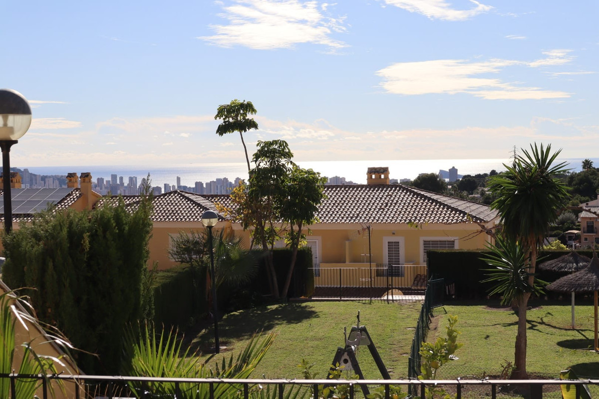 The property has a stunning views of Benidorm and the sea and the bay of Altea. Ground Floor has living-dining room, modern closed kitchen, toilet, hall, staircase and terrace with sea views. First Floor: first big bedroom with balcony has a view of the bay from Altea, two other bedrooms with bathroom with shower and balcony (overlooking Benidorm and the sea), plus another separate bathroom. Basement: Bedroom about 40 m² and two storage rooms. Roof terrace: Terrace with panoramic views of Benidorm, the sea and the bay of Altea. Covered parking place with automatic gate. Additional Services: gas central heating with radiators, air conditioning. The house has alarm system and cameras. Proximity to the beach (7 km), in the near you find medical services, pharmacy, shopping centre, schools, nursery and bus stops.