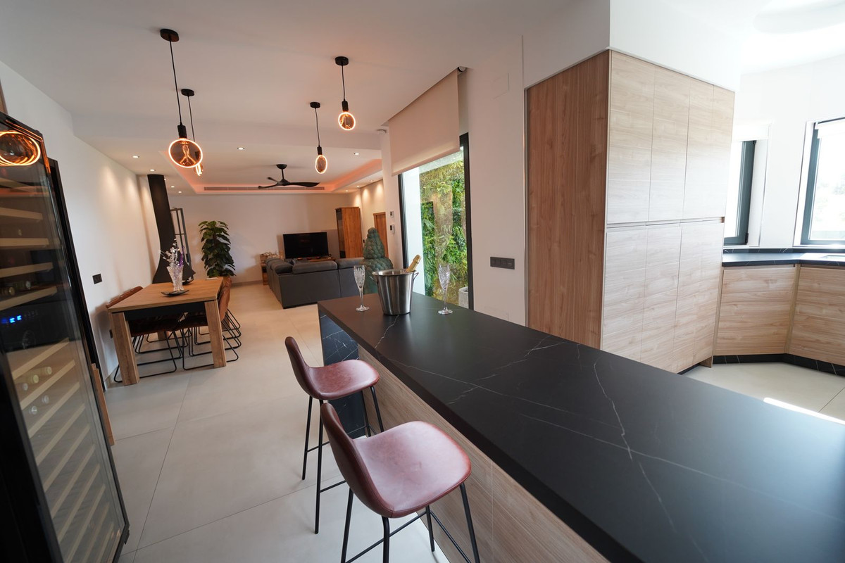 Fully equipped high-end kitchen with silestone countertops & wine fridge