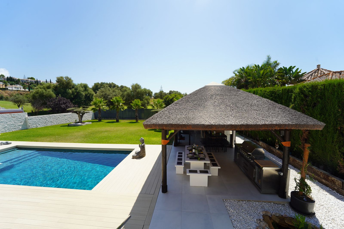 Discover a stunning fully renovated single-level villa located front-line on the prestigious Los Olivos Golf Course in the exclusive Mijas Golf urbanization. Just minutes from La Cala de Mijas and its beaches, shops, and charming village center, and a short 30-minute drive to both Marbella and Málaga Airport.