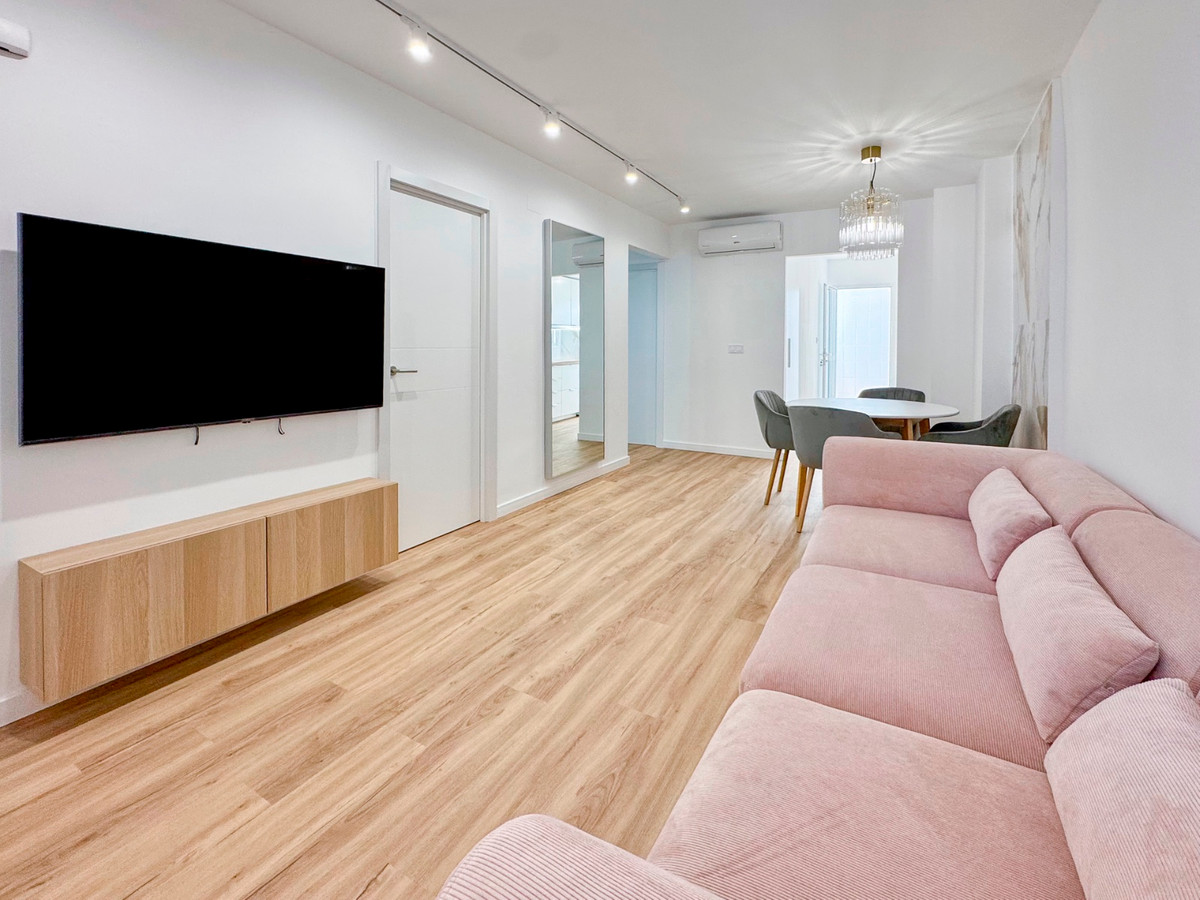 Recently updated, it comes equipped with air conditioning, a dishwasher, washing machine, Smart TV, refrigerator, brand-new mattresses, designer furniture, ambient LED lighting, and fitted wardrobes with mirrors.