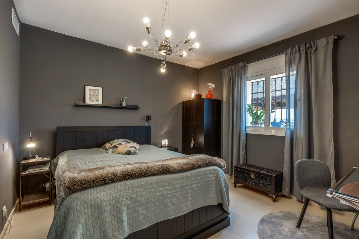Master‑suiten er et ægte privat tilflugtssted: rummelig, rolig og fuld af karakter. Med pejs og direkte adgang til en privat terrasse er det et rum skabt til stilfærdig retreat, med udsigt og komfort, der forfiner hverdagen.