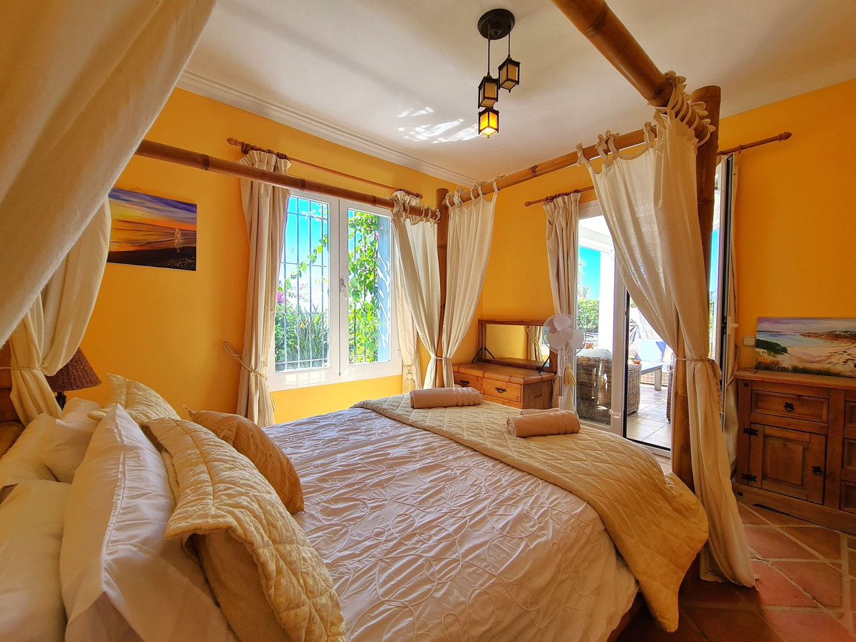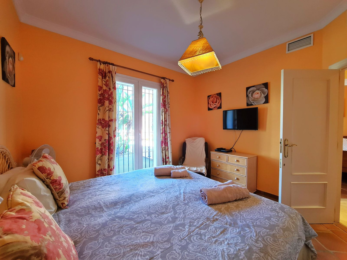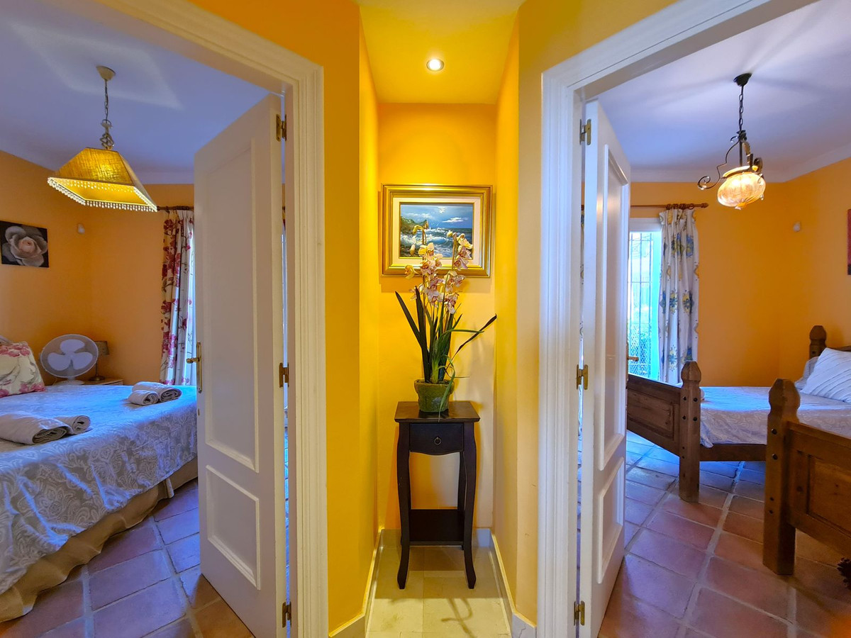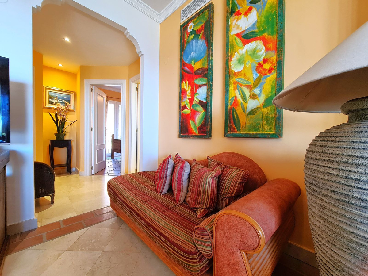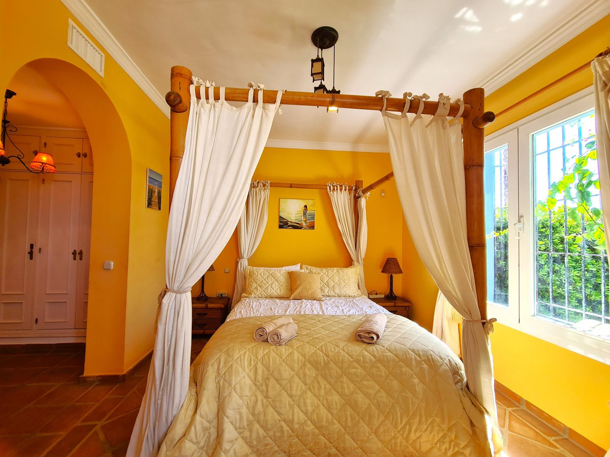 Med en fremragende beliggenhed ved stranden med direkte adgang til kyststien og Casares-stranden, kun få minutter fra Finca Cortesín Golfbane, en af de mest prestigefyldte golfbaner i Spanien, hvor den har været vært for adskillige højprofilerede begivenheder, herunder Volvo World Match Play Championship tre gange og Solheim Cup i 2023. Kun 10 minutter i bil fra Estepona og 4 minutter fra San Luis de Sabinillas med dens smukke og maleriske Puerto de La Duquesa. Tæt på supermarkeder, skoler og det nye Estepona Hospital. Denne STORE LEJLIGHED I STUEETAGE MED PRIVAT HAVE OG HAVUDSIGT har DIREKTE ADGANG TIL STRANDEN og er sydvendt. Ejendommen kan prale af en rummelig entré, der fører til den rummelige stue-spisestue med store vinduer, der er forbundet med den store overdækkede terrasse, som har glasgardiner og også giver rigeligt naturligt lys og en smuk udsigt over havet og haven indefra huset. Derudover er det åbne køkken fuldt udstyret og har et vaskerum. Disse fællesområder har et gæstetoilet placeret ved siden af husets indgang. Husets tre soveværelser er fordelt ud fra stuen. De to gæsteværelser kan prale af store indbyggede skabe og store vinduer med udsigt over de smukke fælleshaver. Ved siden af dem er der et komplet badeværelse med badekar og gulvvarme. Det rummelige soveværelse har et påklædningsområde og et eget badeværelse med spabad, separat bruser, dobbelt håndvask og gulvvarme. Dette soveværelse har også direkte adgang til den private terrasse. Hjemmet kan prale af smukke og velholdte fællesområder med flere swimmingpools og ideelle haver. EN STOR MULIGHED FOR AT OPLEVE LUKSUSEN VED AT HAVE DIT HJEM VED MIDDELHAVETS KYSTER!!