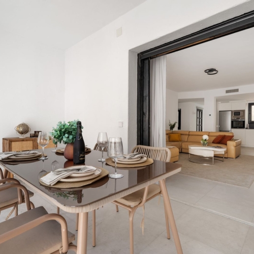 Beliggende i et lukket område på anden række lige ved stranden, er du kun få minutters gang langs promenaden til hjertet af Puerto Banús – med dens berømte marina, designerbutikker, toprestauranter og summende natteliv – mens du stadig nyder en rolig, privat atmosfære derhjemme.