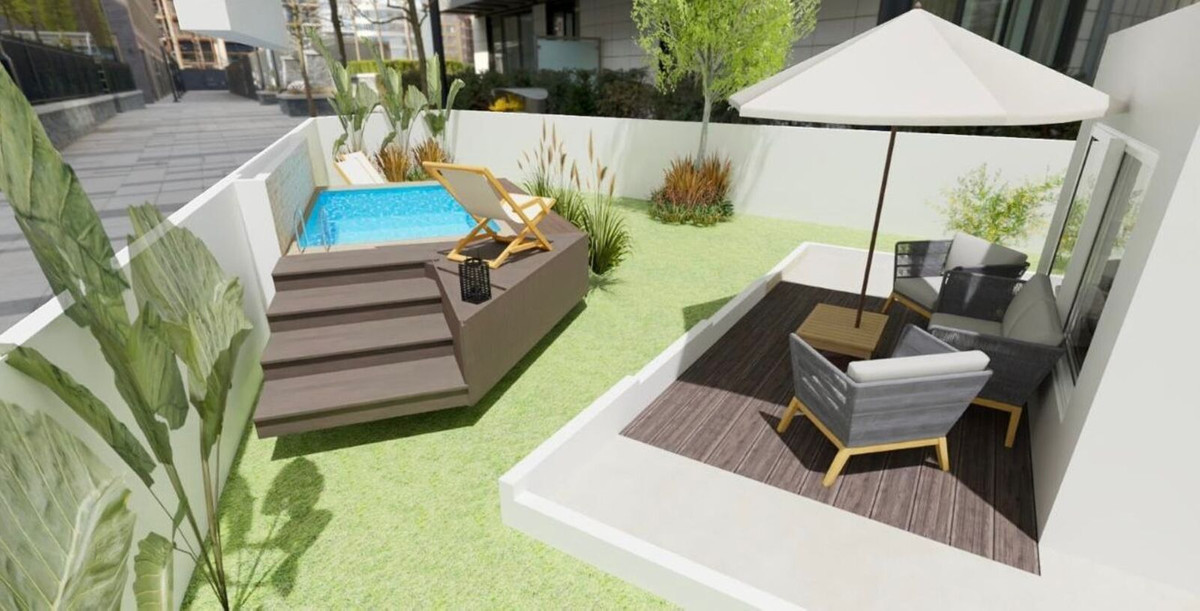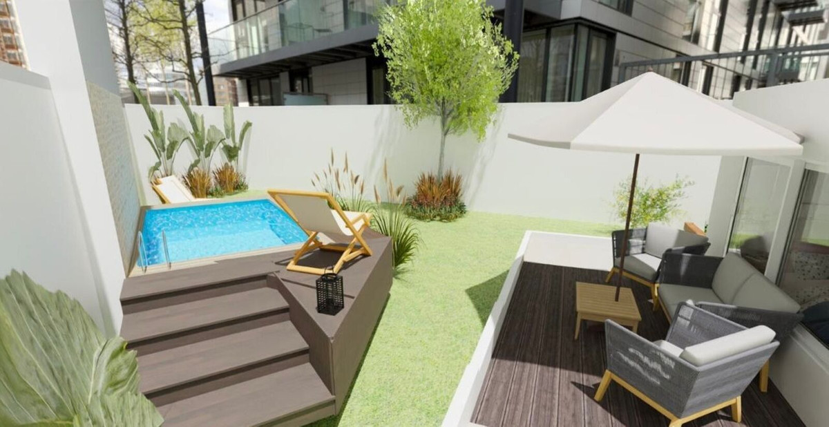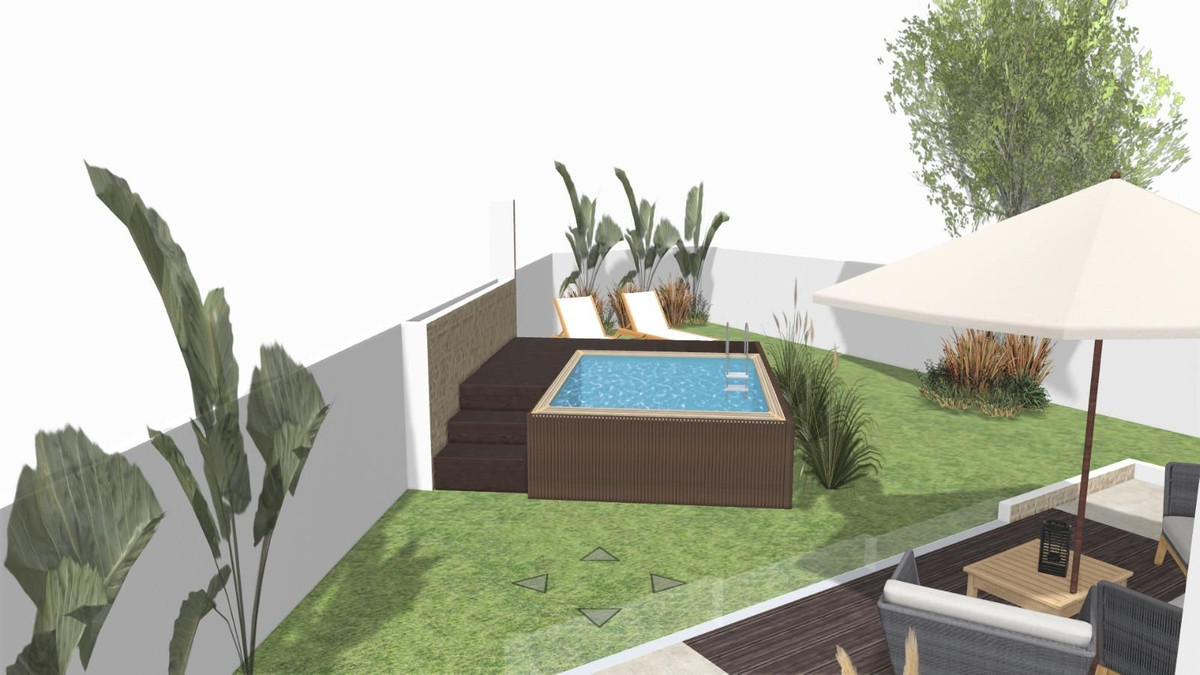 Privat pool og nem have med lavt vedligeholdelsesbehov