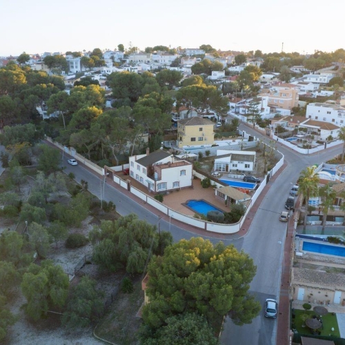 Introducing this beautifully presented three-bedroom, two-bathroom detached villa, ideally located in the highly sought-after neighborhood of El Chaparral / San Luis - Costa Blanca South. Set on a generous plot of approximately 800 m², this property offers a rare blend of privacy, space, and refined style. Surrounded by privacy walls and accessed via a secure entrance, the villa boasts a tranquil and inviting ambiance from the moment you arrive.