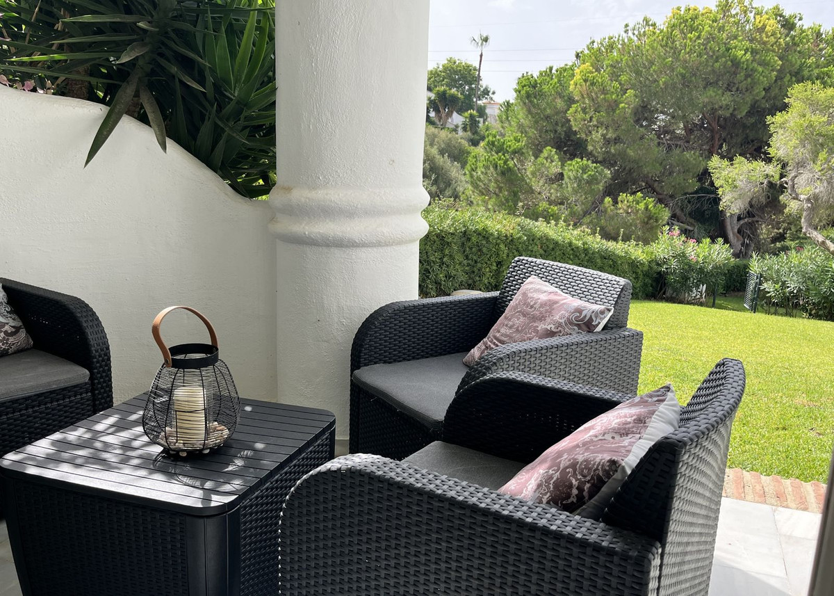 This is without a doubt the best apartment in this charming boutique complex in Calahonda. Enjoying a privileged and private corner position, the apartment offers direct access to the superb communal swimming pool and enjoys a very large garden at both the front and rear—an exceptional outdoor space that truly extends the living area. It's perfect for sun loungers, entertaining, and relaxed family holidays.