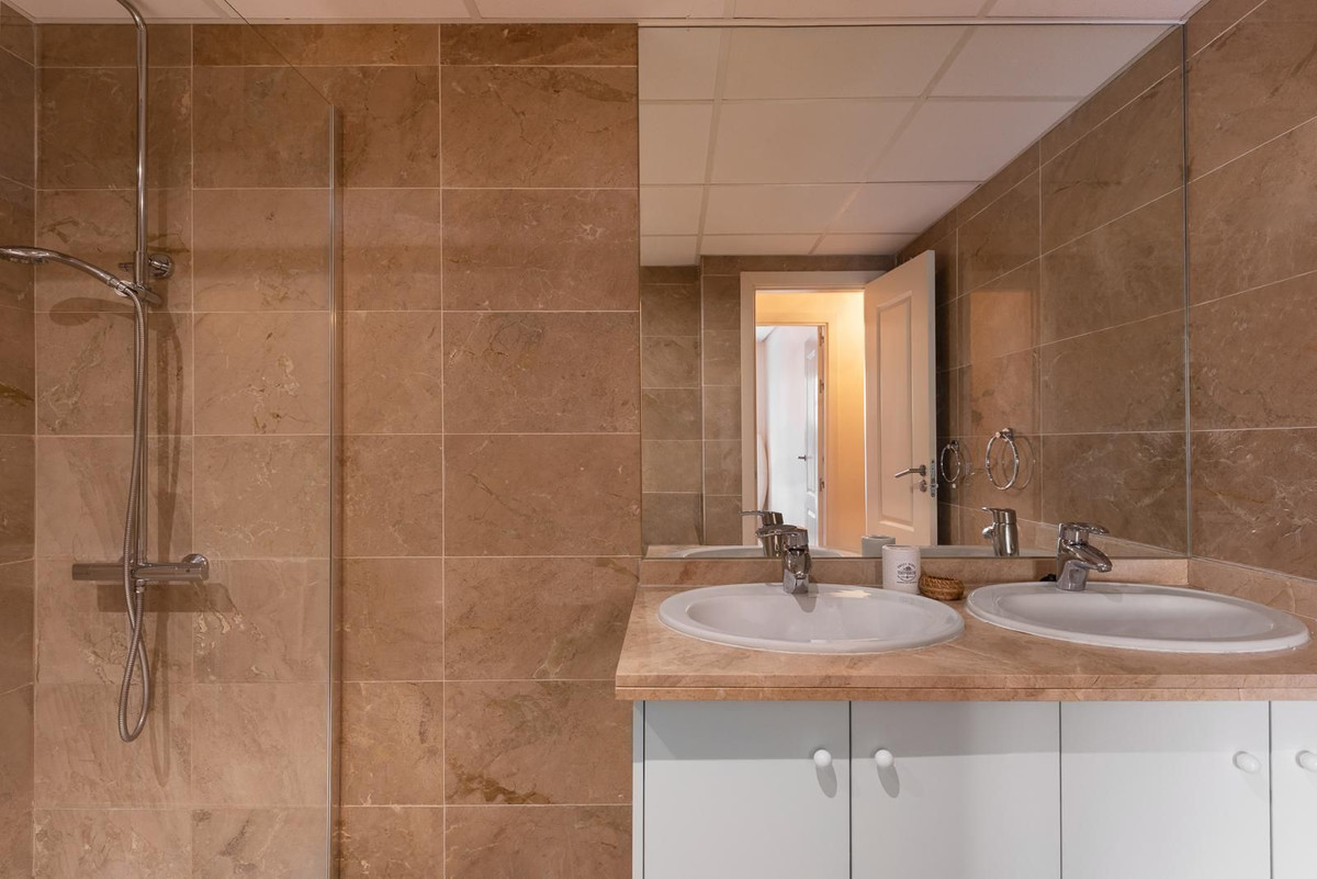 Bright modern luxury apartment in the sought after Miraflores community. The apartment has been reformed to the highest standard. Marble floors throughout this large property that comprises of 2 large double bedrooms, with the master boasting an on- suite bathroom, and terrace access, fully modernised. Fitted wardrobes and furnished to a top standard in both rooms.