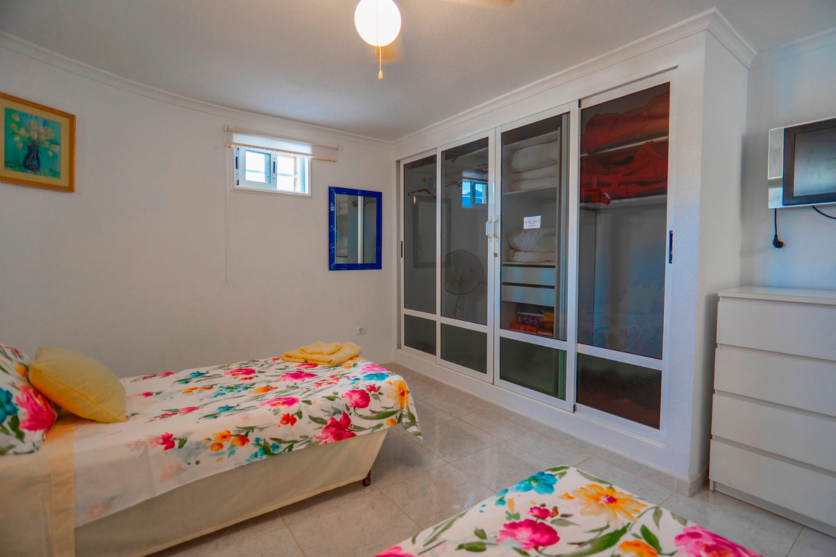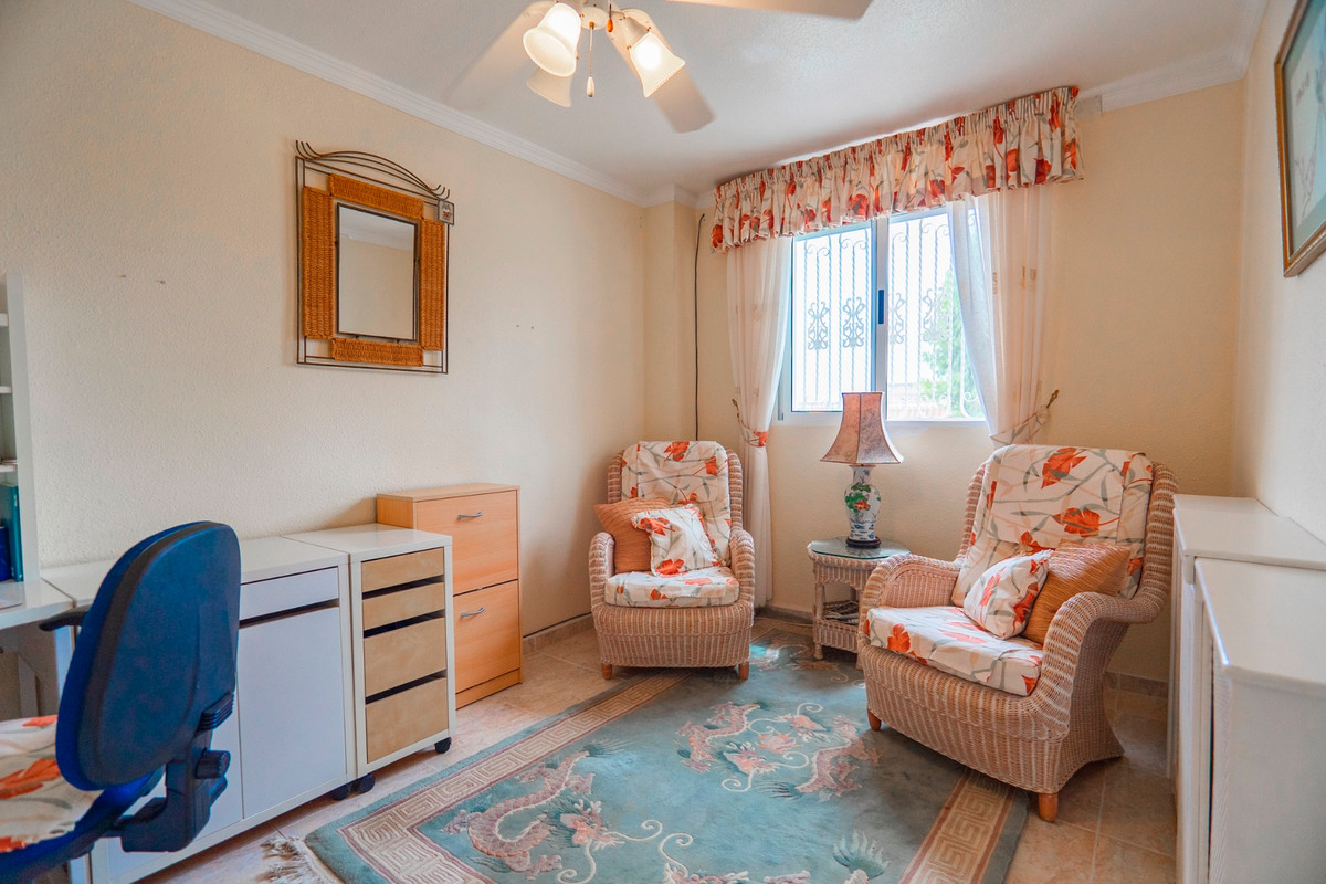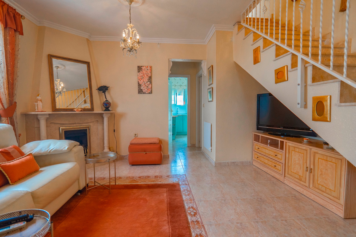 Upstairs, two generously sized double bedrooms each have en-suite bathrooms, with the master suite featuring a private balcony to enjoy sunrises or sunsets over Ciudad Quesada. Air-conditioning ensures comfort in both upstairs bedrooms.