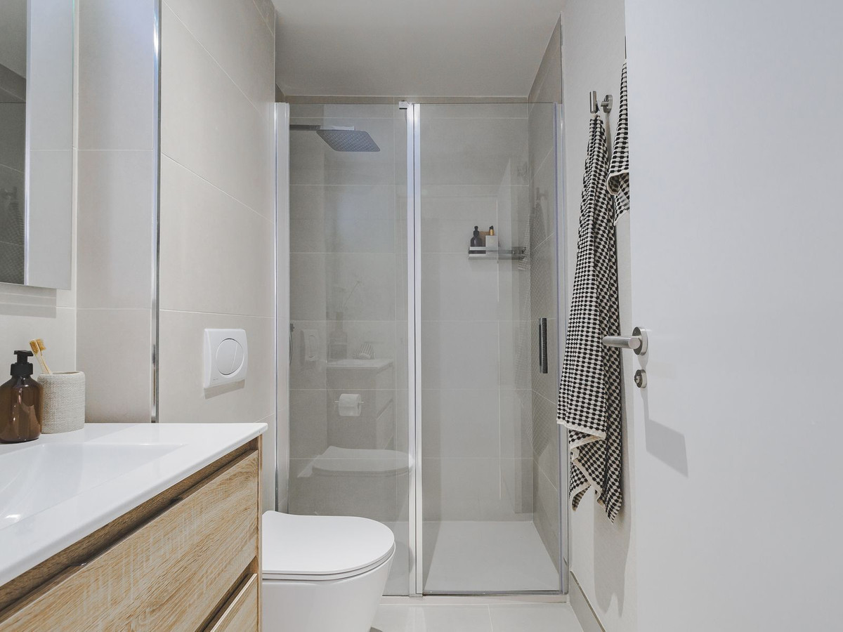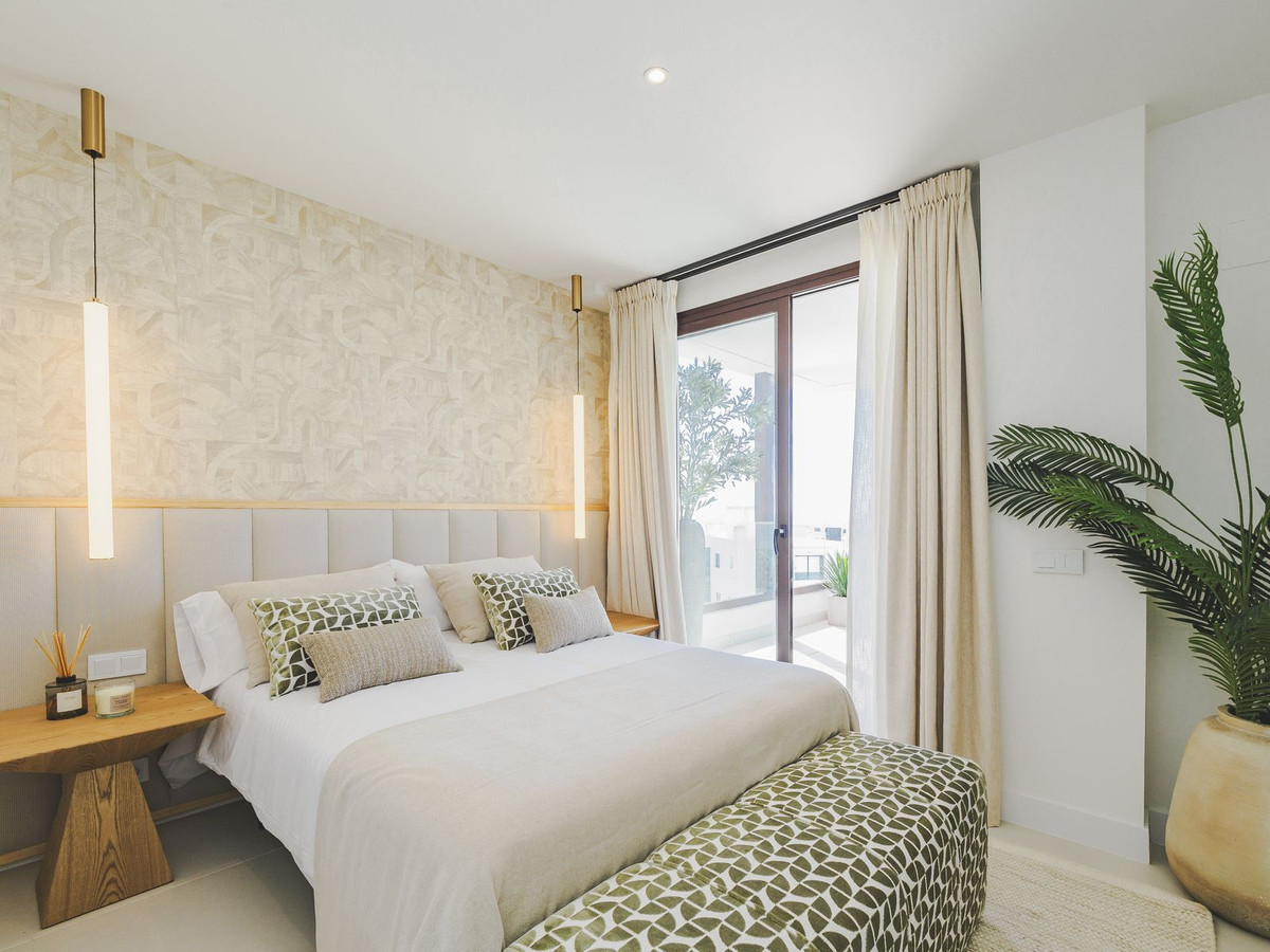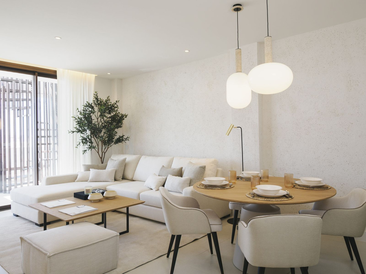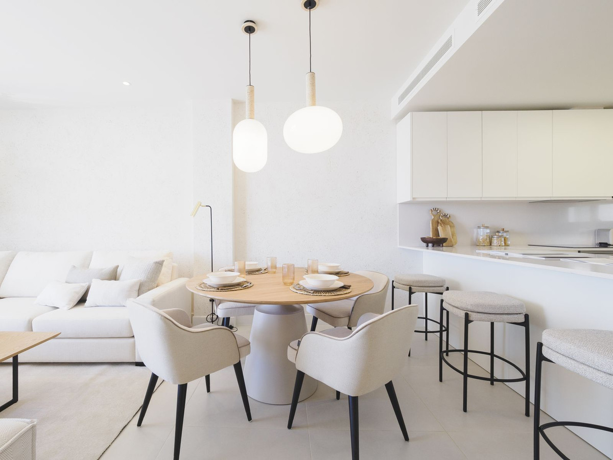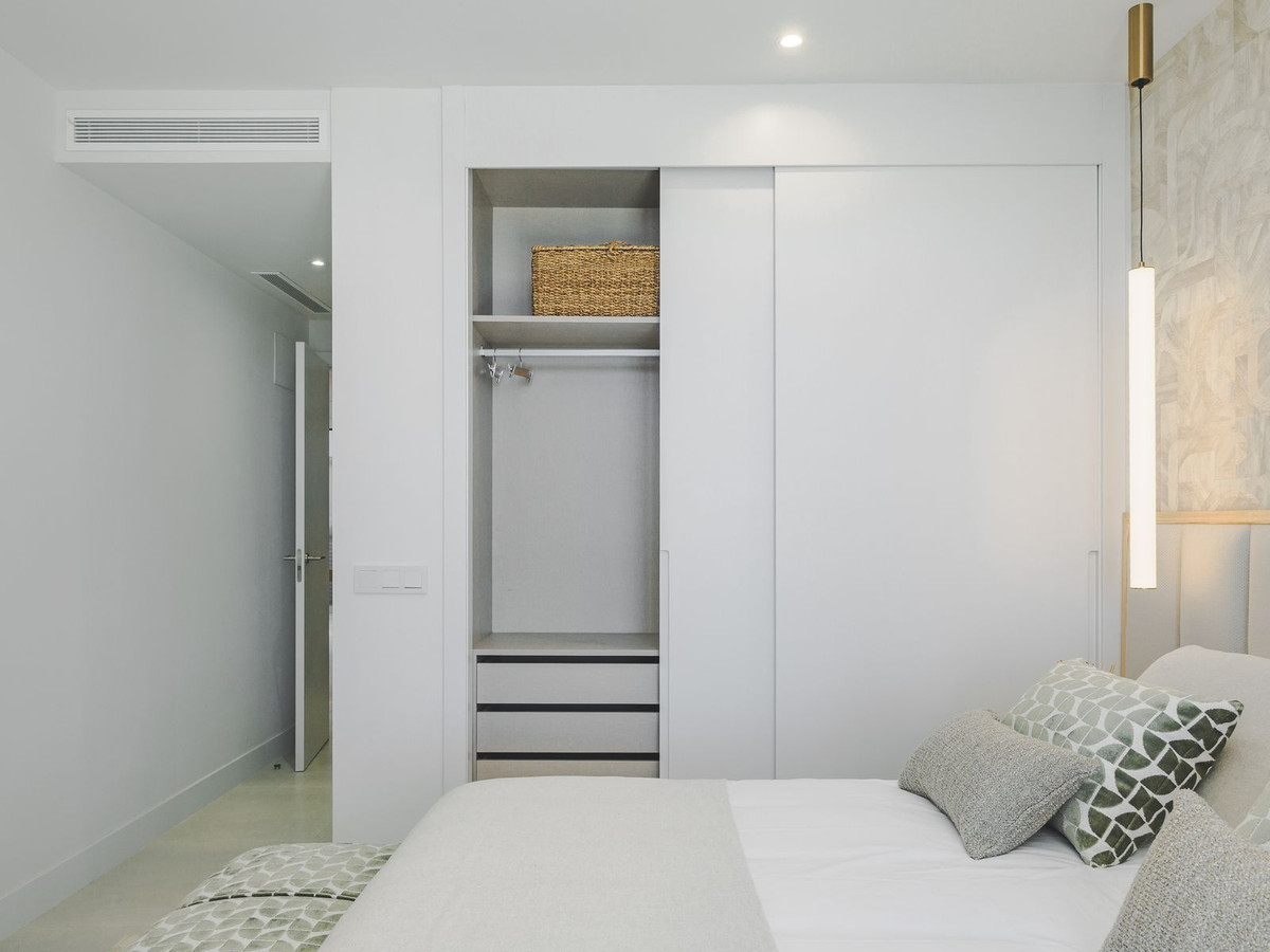 The property consists of 2 spacious bedrooms. The designer kitchen is open to the living room. From the living-dining-kitchen room, we have access to the main terrace of 27m2, and from this terrace we access the solarium floor, where we have a barbecue and a jacuzzi for 4 people.