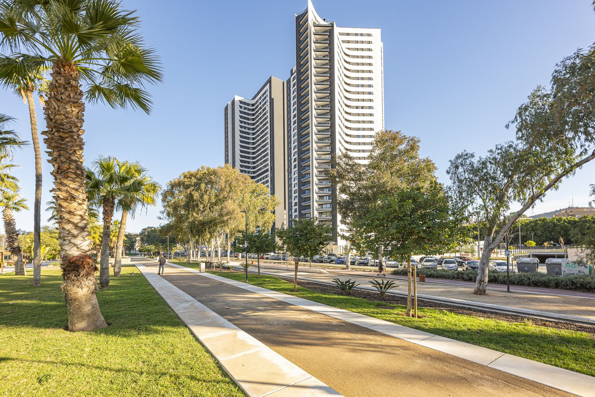 This exclusive flat is located in one of Malaga's most prestigious high-end buildings, Torre Martiricos. Situated on the 17th floor and facing west, it offers stunning views of the city and is a home full of light and style. Its PVC windows with electric blinds provide comfort and modernity. The kitchen, integrated into the bright living room, allows you to enjoy panoramic views of Malaga while preparing your meals.