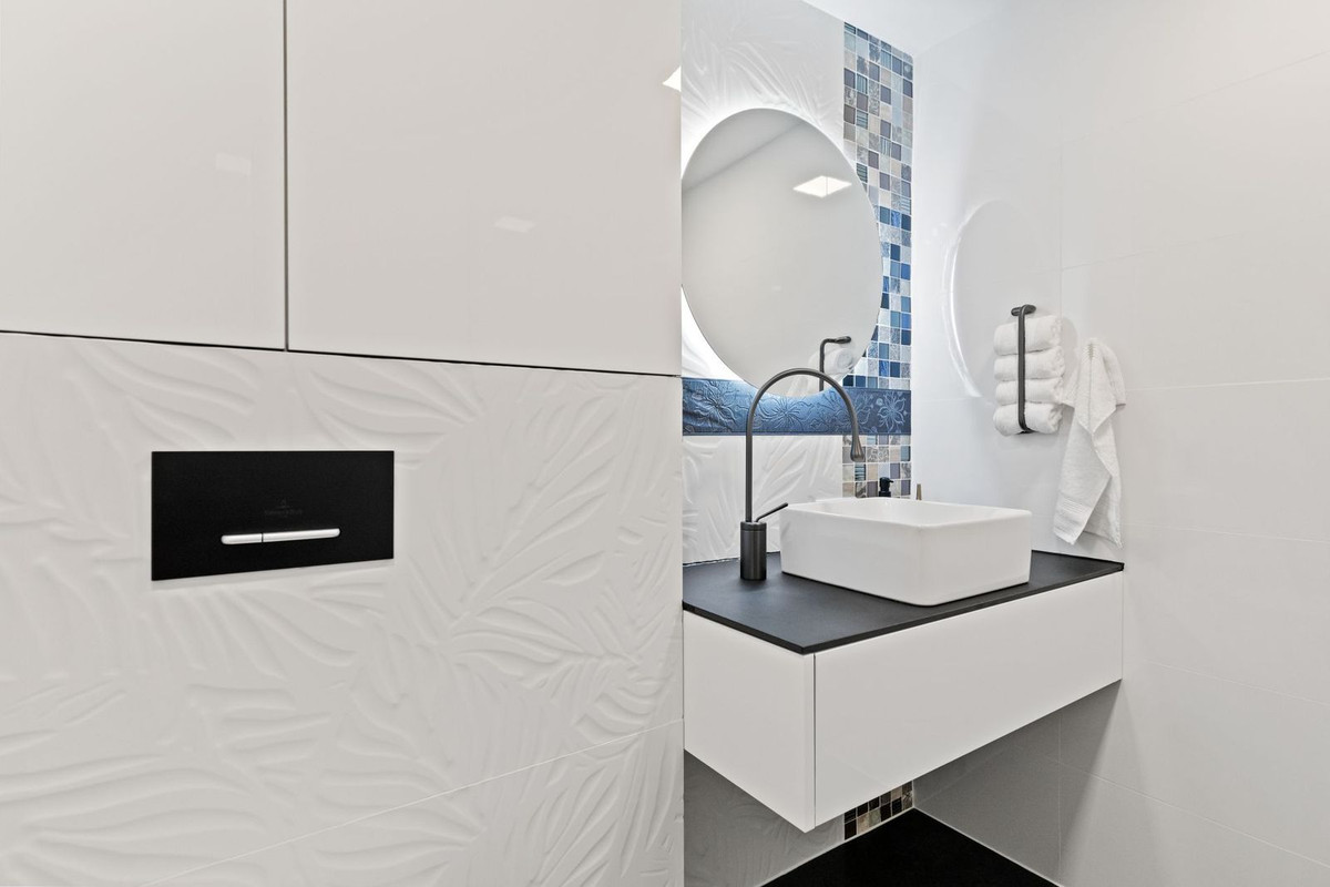 The main bathroom stands out for its sanitary Villeroy & Boch and a modern design shower. It also has a separate guest toilet.