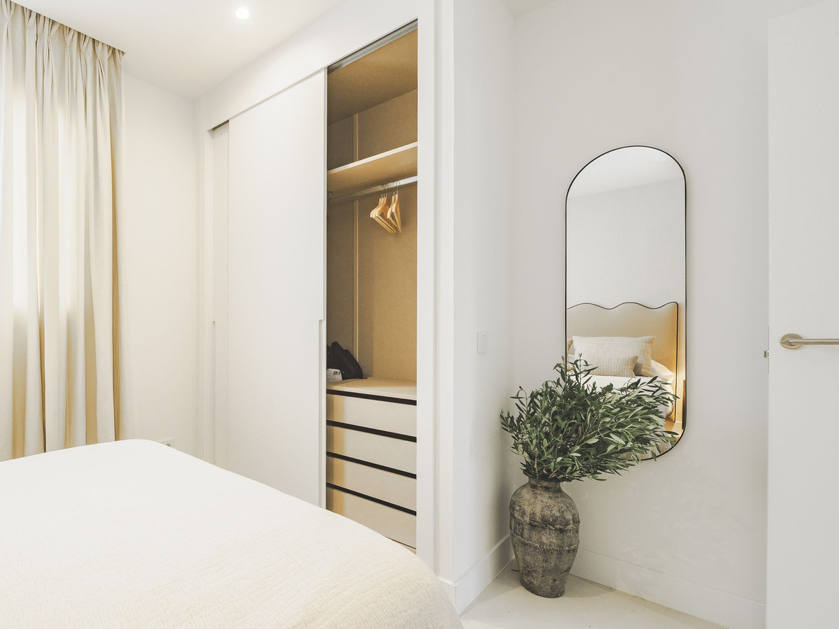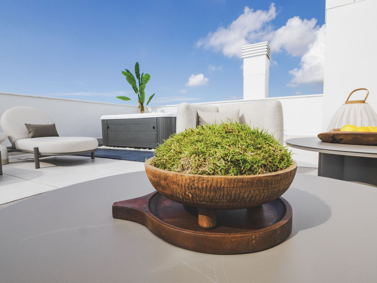 The penthouse features two spacious bedrooms, an open-plan designer kitchen integrated into a bright living-dining room. From this room, you can access the 27 m² main terrace, which in turn connects to a private solarium equipped with a barbecue and a four-person jacuzzi, ideal for enjoying the climate and views of the Costa del Sol.
