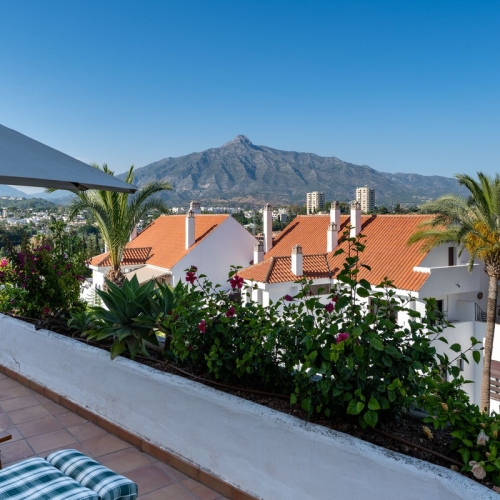 Udsigt : Hav, Bjerge, Landområde, Panoramisk, Have, Pool, Patio, Skov.