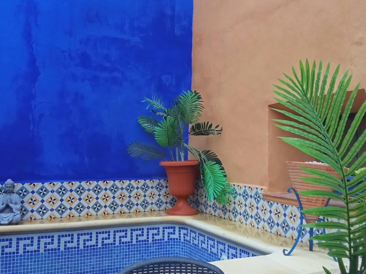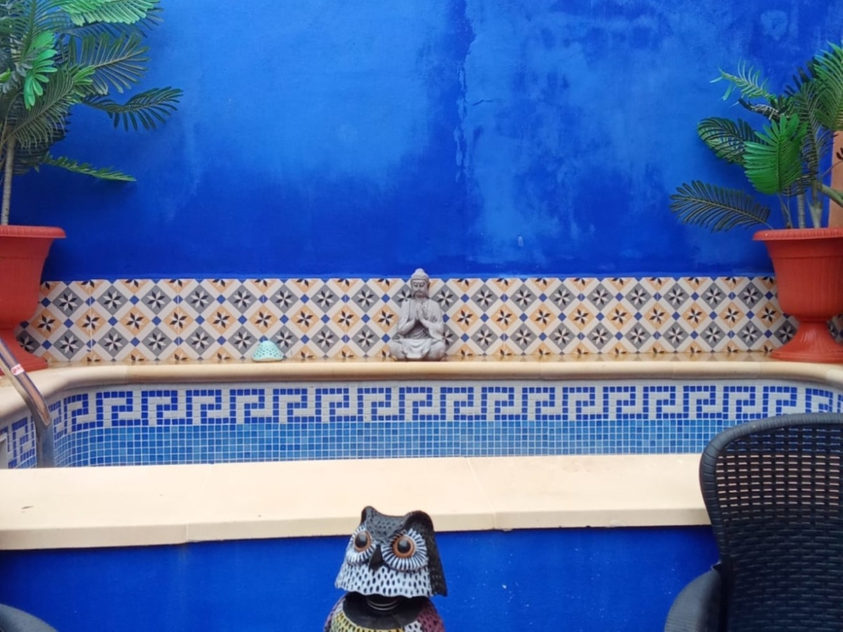 Enclosed private courtyard with above ground built plunge pool, bar and sink