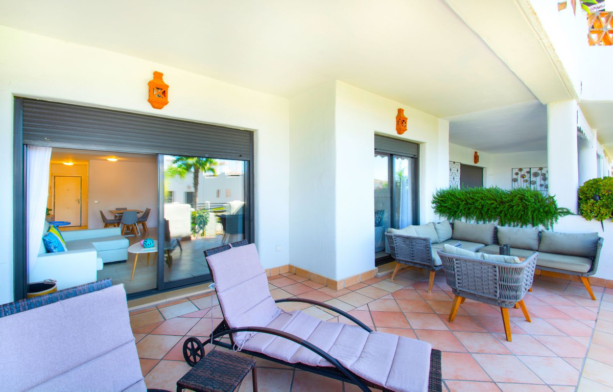 It has 2 bedrooms and two bathrooms, the master bedroom with en suite bathroom. From the secondary bedroom there is access to the terrace which offers a very nice sea view. From the master bedroom you can access the main terrace which in turn gives access to the private garden.