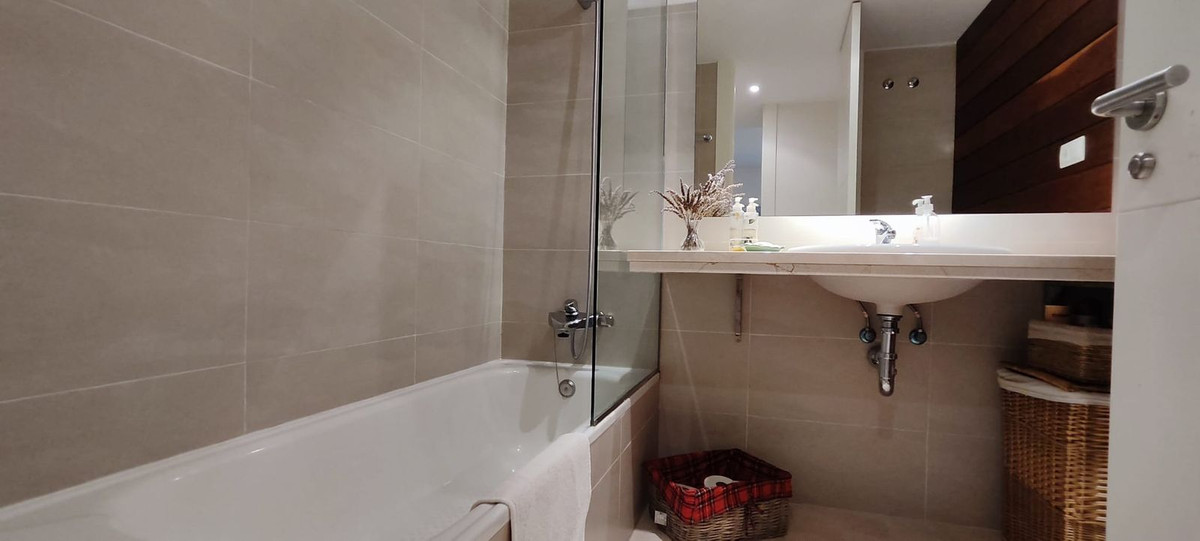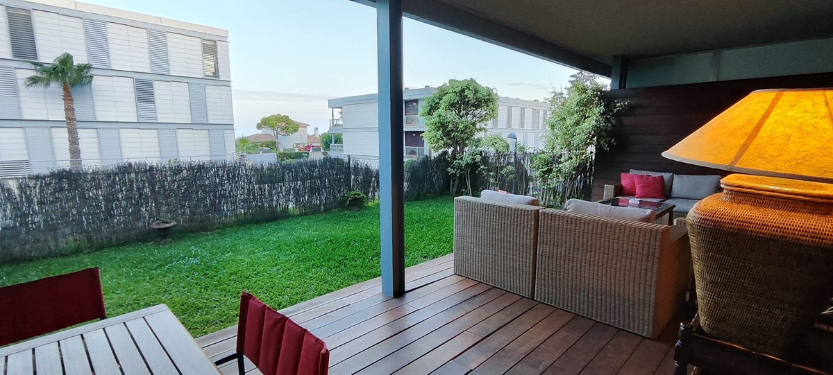 With a total built area of 172 m² (150 m² usable), this magnificent ground-floor home features 3 spacious bedrooms, 3 full bathrooms, a fully fitted kitchen with laundry area, and a bright living-dining room that opens onto a charming terrace overlooking the landscaped gardens.