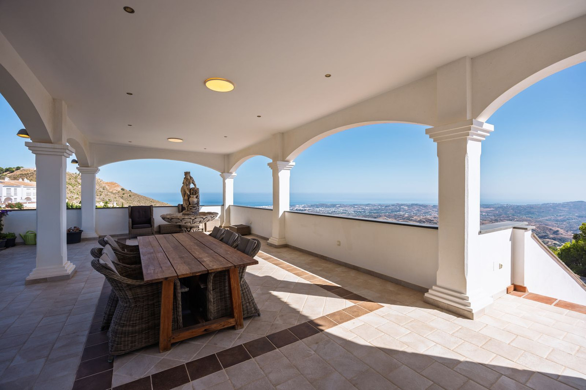 Ejendommen er omgivet af en have med flere terrasser, en saltvands-infinitypool, børnepool og en garage til to biler. Et miljøvenligt septiktank-system genbruger vand til havevanding. Denne villa kombinerer moderne luksus, energieffektivitet og uforlignelige panoramiske udsigter på en af Costa del Sols bedste beliggenheder.