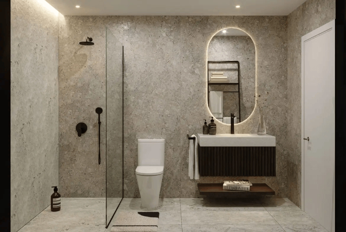 Dyk ned i en bæredygtig og sofistikeret livsstil, understøttet af det prestigefyldte BREEAM-certifikat, der garanterer fremragende arkitektonisk bæredygtighed.
