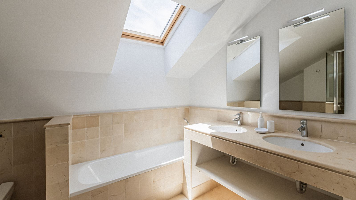 The villa is distributed over 3 levels, all connected by a private elevator. It has 4 bedrooms, all with en-suite bathrooms, plus a guest toilet. The master bedroom features a fantastic walk-in wardrobe, large terraces, a fully equipped kitchen, and a laundry room.