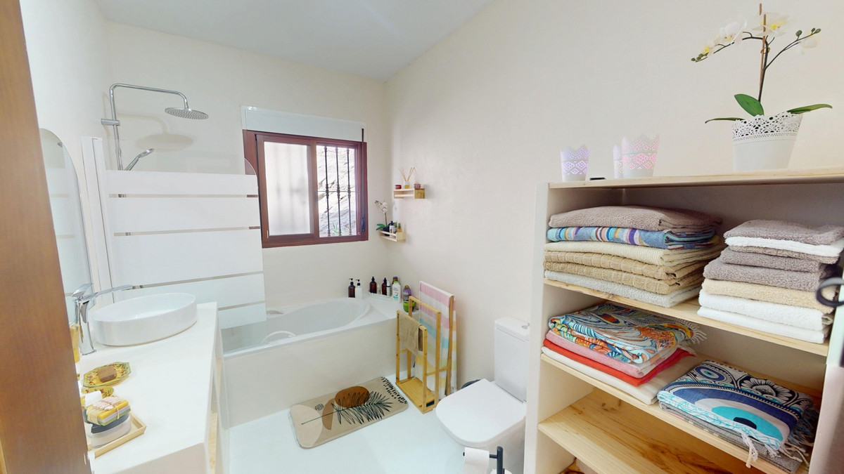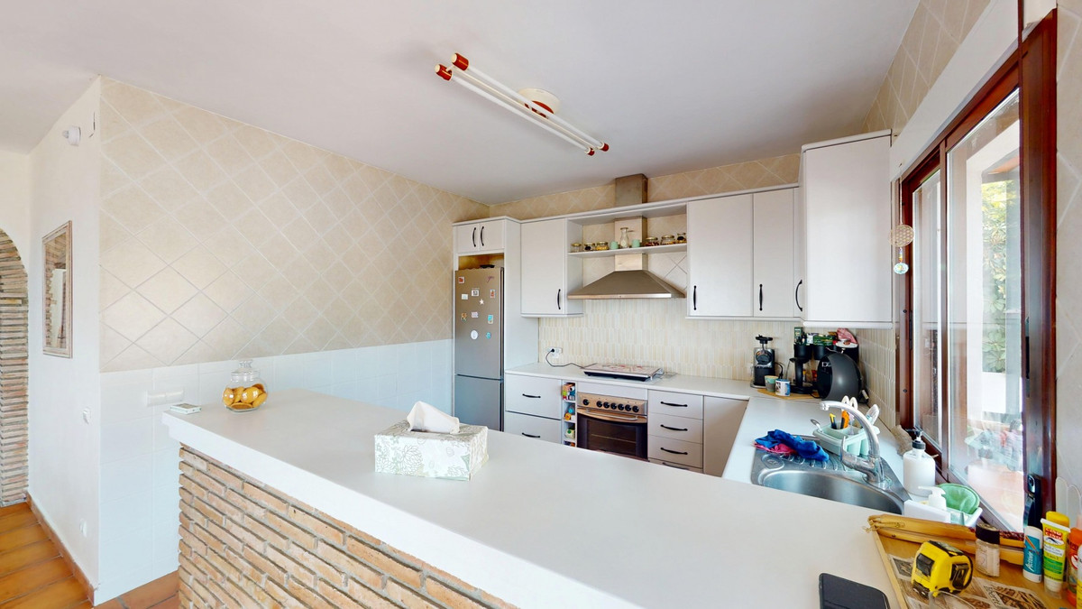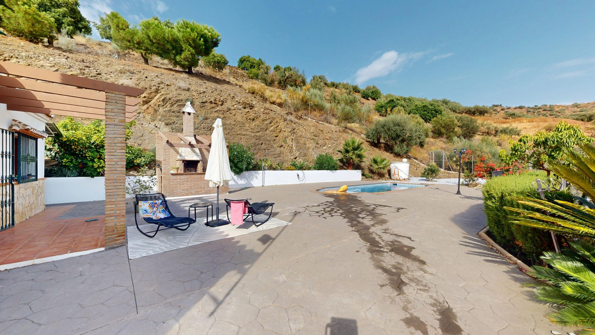 Denne charmerende ejendom ligger i de smukke bakker i Arenas og tilbyder en fantastisk udsigt over både bjergene og Middelhavet. Det er det perfekte tilflugtssted for dem, der leder efter fred, natur og den andalusiske livsstil. Huset har tre komfortable soveværelser og et velholdt badeværelse. Køkkenet er fuldt udstyret og tilbyder alt, hvad du behøver for at tilberede lækre måltider, mens du nyder de spektakulære omgivelser. En rummelig terrasse inviterer dig til at nyde udendørs ophold, solbadning og spisning med udsigt. Den private pool tilbyder forfriskende lindring på varme sommerdage. Aircondition sikrer et behageligt indeklima året rundt. Beliggende på en stor grund med modne oliventræer, tilbyder denne ejendom masser af plads, privatliv og rustik charme. Kombinationen af havudsigt, ro og natur gør dette hus til et unikt tilflugtssted. Vi er glade for at kunne præsentere denne ejendom for dig snart, enten personligt eller via virtuel visning. Fordi denne verden er unik - ligesom vores Axarquía. I Andalusien. På Costa del Sol. Her, på livets solside...
