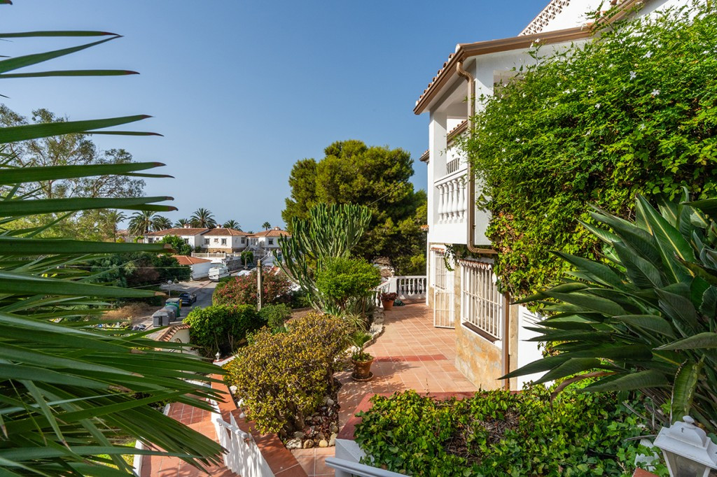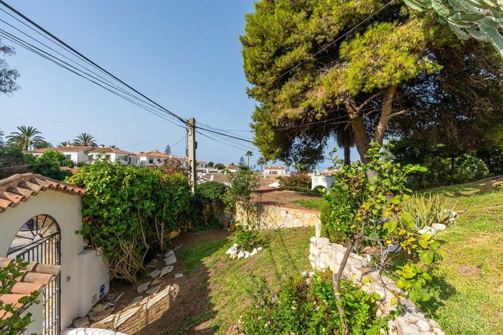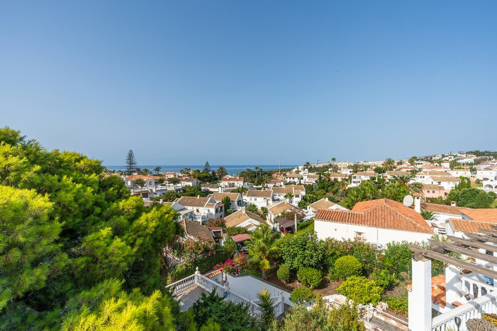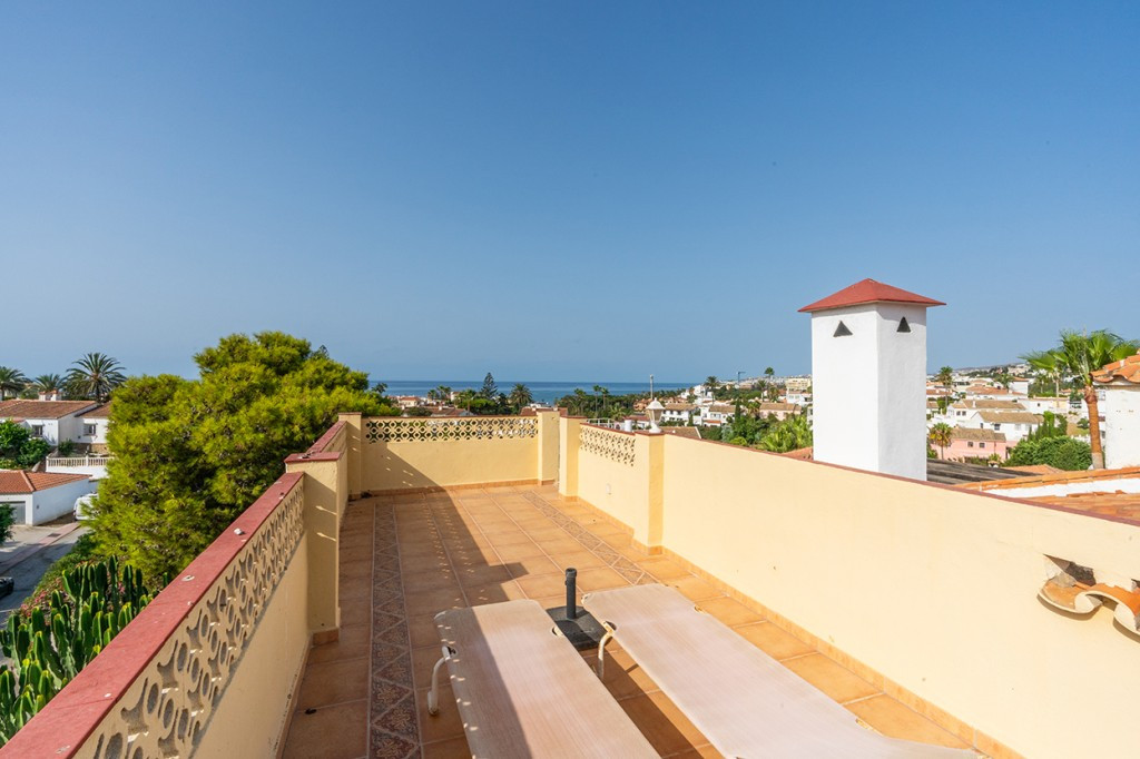 Traditional house in El Faro in Mijas-Costa with two levels and with beautiful sea views offering in the main residence a living room with separate dining room and bright terrace, kitchen, two bedrooms and two bathrooms. The guest apartment offers a living room, kitchen, and one bedroom and bathroom. The house has a lovely roof terrace with sun all day, storage room and ample garage. Central gas central heating in the guest apartment and underfloor heating in the main house. Ideal family house just a short drive from the beach and from Fuengirola.