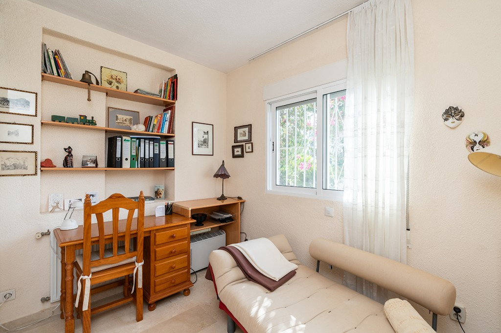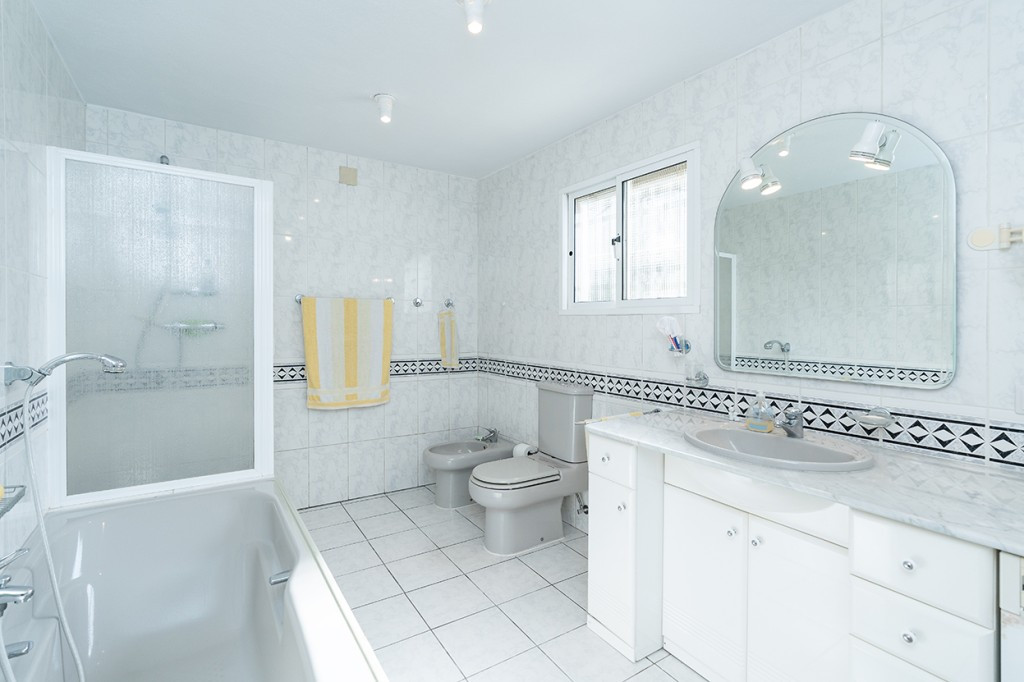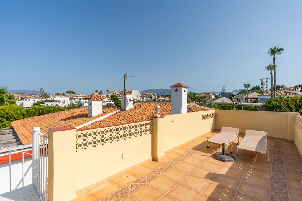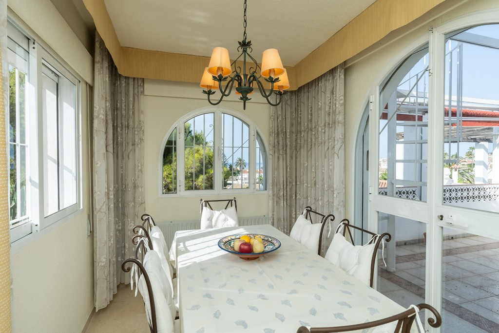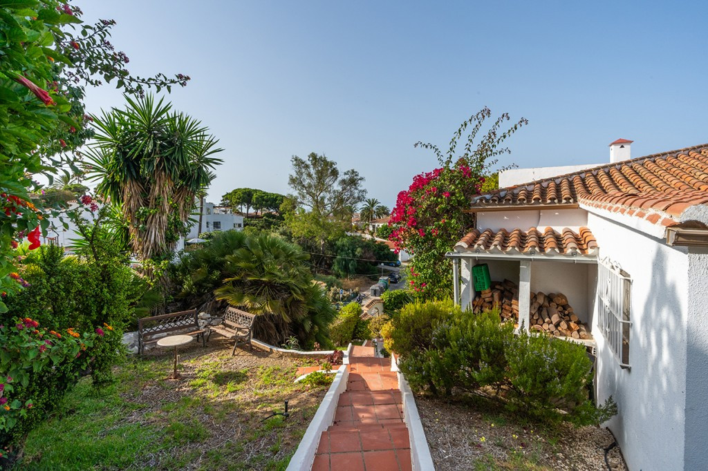 Traditional house in El Faro in Mijas-Costa with two levels and with beautiful sea views offering in the main residence a living room with separate dining room and bright terrace, kitchen, two bedrooms and two bathrooms. The guest apartment offers a living room, kitchen, and one bedroom and bathroom. The house has a lovely roof terrace with sun all day, storage room and ample garage. Central gas central heating in the guest apartment and underfloor heating in the main house. Ideal family house just a short drive from the beach and from Fuengirola.