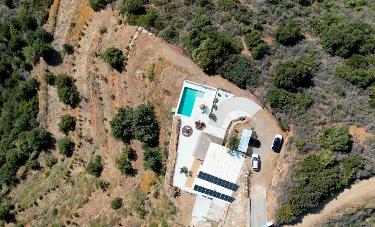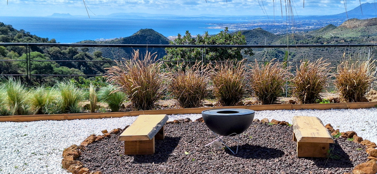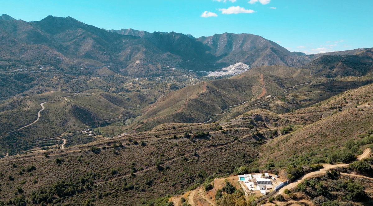 Can you imagine waking up every morning surrounded by pure nature, in a private estate with panoramic views stretching across the Mediterranean, Gibraltar, and Africa? This hidden gem in the Altos de Marbella makes every day feel like a holiday.Set on a fully fenced 7,000 m² plot, this beautifully renovated countryside home is self-sufficient and environmentally conscious. Enjoy silence, privacy, and the natural beauty of a setting where only birdsong breaks the peace.The house offers two bedrooms — one with a dreamy walk-in wardrobe, and the other with an en-suite bathroom. The spacious, warm living room opens up to postcard-worthy views, while the fireplace makes every evening feel cozy and inviting. The open-plan kitchen, finished to a high standard and featuring a large wooden table for six, is ready for your best moments.Fully equipped with individual air conditioning units in every room, a solar panel system, its own water well, and a massive 50,000-liter water cistern — everything here has been designed for comfortable, private, and connected living without sacrificing modern comforts.The estate is planted with fruit trees — orange, fig, avocado, vines, and more — and is accessed via a well-maintained dirt road, just 10 minutes from the beach and 15 minutes from Marbella's town center.Whether from your pergola-covered terrace or by the fireplace, every corner of this home offers a window into peace, beauty, and natural luxury.Only 10 minutes from Marbella's iconic arch, Los Monteros beach, Playa del Cable, Costa del Sol Hospital, and ALDI supermarket.The abbreviated information document is available to you. Expenses: Taxes (ITP or VAT+AJD) + Notarial and registration expenses. AGB