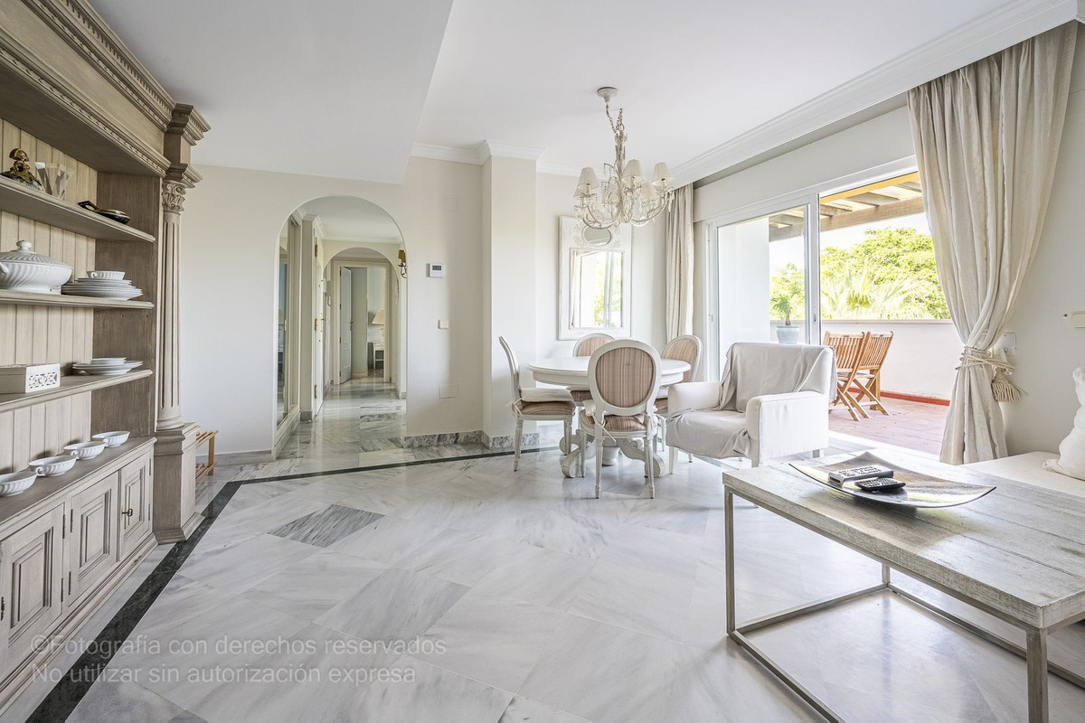 Bright two-bedroom, two-bathroom penthouse located in La Dama de Noche, one of the most exclusive and sought-after residential complexes in the area. Just one kilometre from the beach and Puerto Banús, it offers the tranquillity of a residential setting along with the convenience of having all services close at hand.