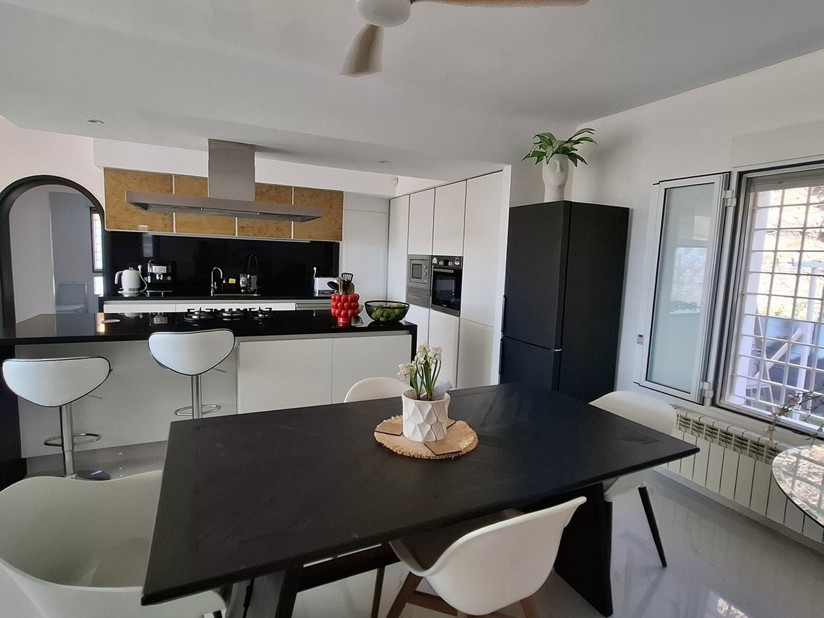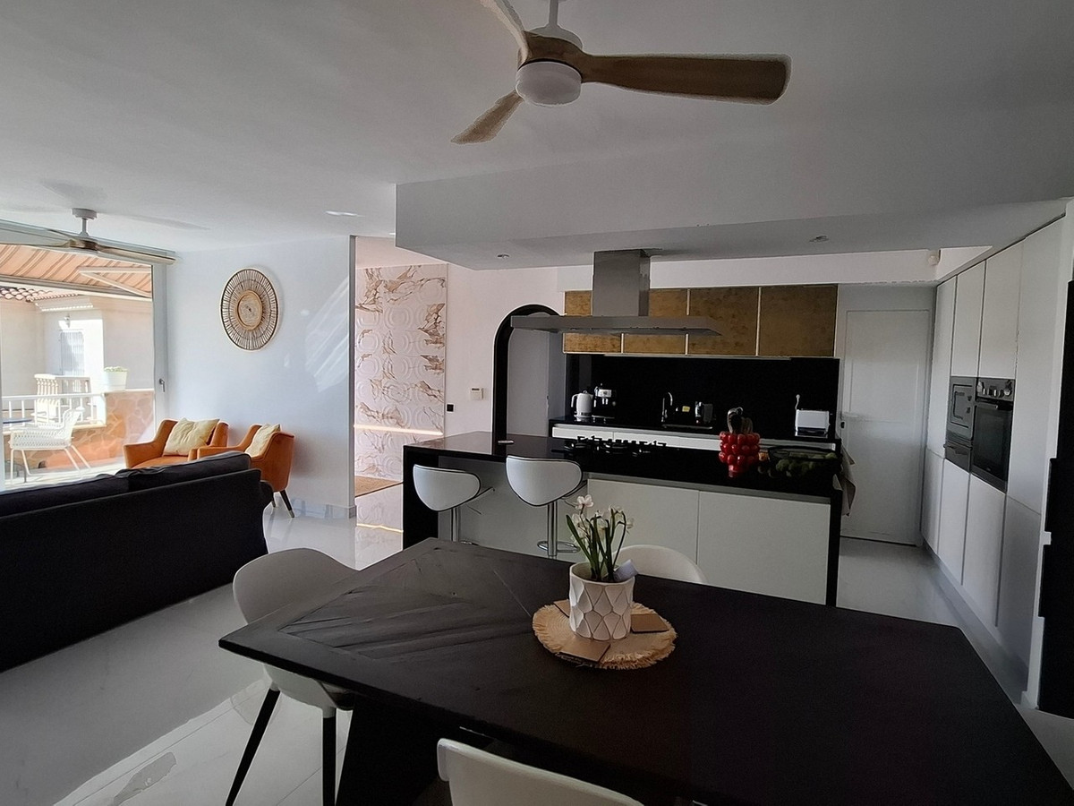 The well-appointed fully fitted open-plan kitchen flows effortlessly into the lounge and dining area leading to a spacious private terrace with spectacular sea views.