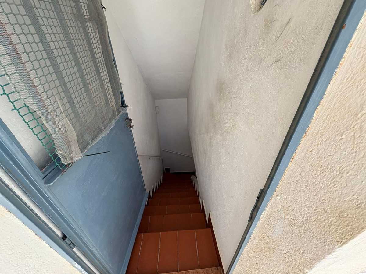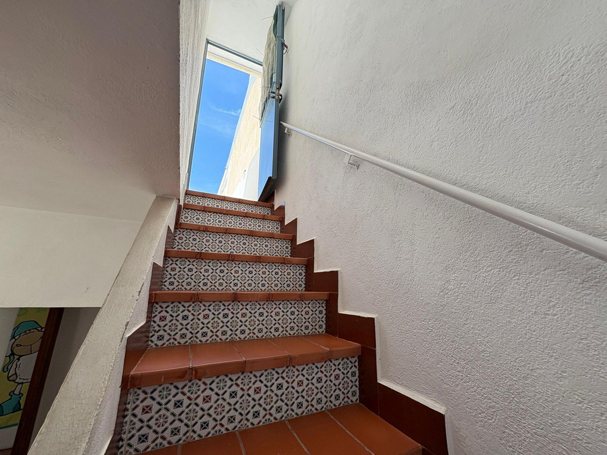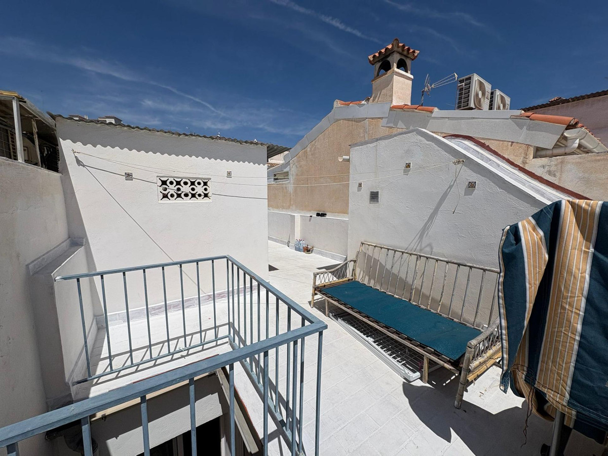 The property is distributed over two floors plus a spacious rooftop terrace. On the ground floor, you'll find one bedroom, a small bathroom, a cozy living room, and a functional kitchen with access to a small patio. The second floor features two bright bedrooms and a full bathroom. The terrace, approximately 45 m², includes a laundry room and boasts beautiful sea views, making it the perfect space to relax, enjoy outdoor dining, or create a chill-out area.