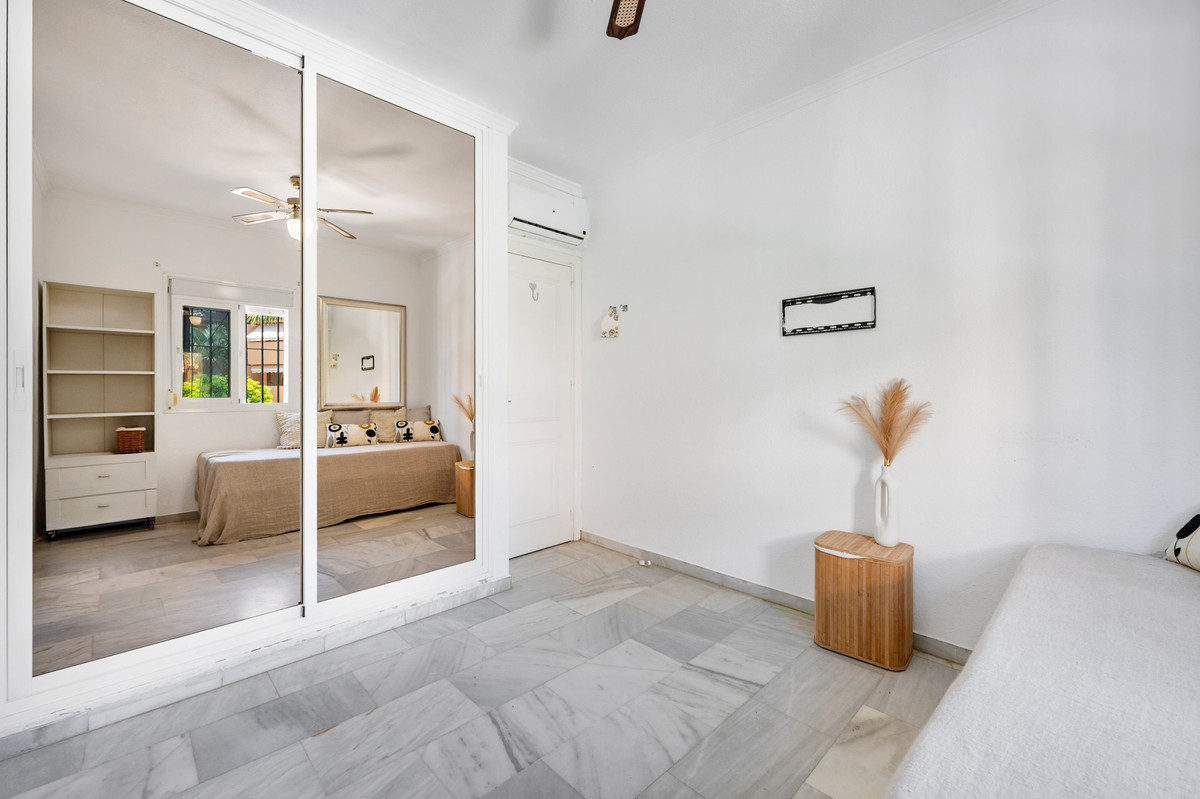 This impressive 4-bedroom townhouse enjoys a prime position within a secure, gated beachfront community, set directly on Hipopótamo / Las Chapas Beach in Rosario, Marbella East. Surrounded by some of the area's finest restaurants and most stunning stretches of coastline, the location blends lifestyle and investment potential seamlessly.