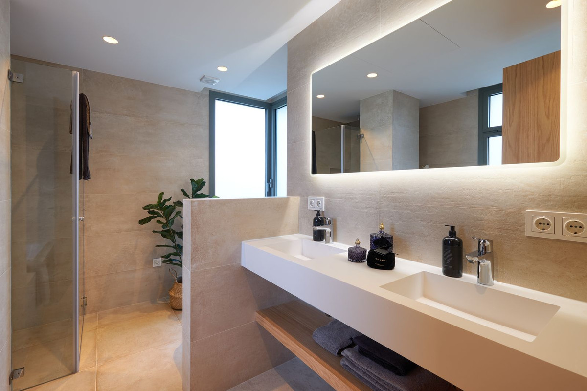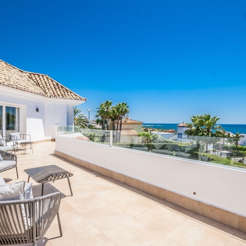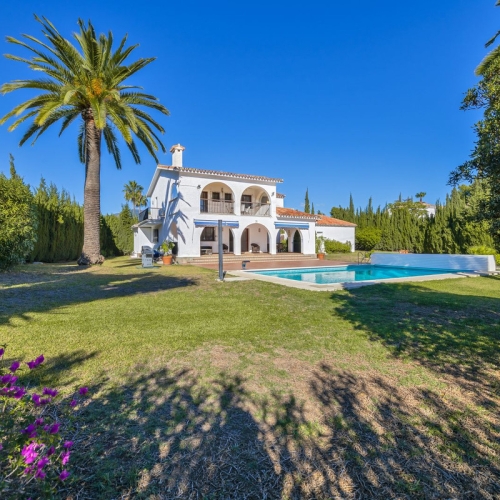A modern south facing 6-bedroom frontline golf villa located in El Campanario, Estepona East, within a short drive of beaches, a variety of golf courses, San Pedro de Alcantara, Puerto Banus and Estepona Town Centre. Distributed over three floors, the accomodation comprises an entrance hall, a guest toilet, an open-plan fully fitted kitchen, lounge and dining area with direct access to the covered terrace with seated areas and views overlooking the pool & manicured garden. Upstairs, there are four double bedrooms, two of which are ensuite and two bedrooms sharing a family bathroom. From this level, there is access to the large solarium with built-in BBQ, Jacuzzi, covered area ideal for outdoor dining and views overlooking the golf course. On the lower level, there is a large living/entertainment area, two guest bedrooms sharing a bathroom, laundry room and storage. Situated next to El Campanario Club where there´s a gym, restaurant, indoor pool and a 9 hole golf course.