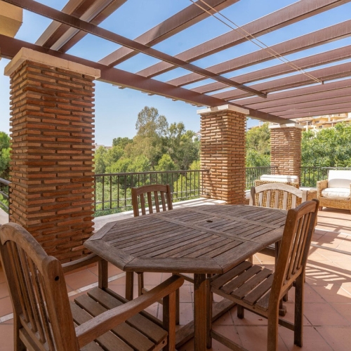 At Los Arqueros Golf Club, every day begins with breathtaking views of the sea, the golf course, and the mountains. This corner apartment has it all: prime location, privacy, and a touch of luxury—just minutes from Atalaya and Guadalmina golf courses.
