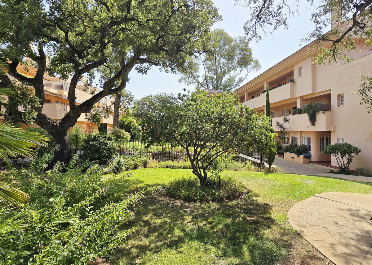Few places in East Marbella boast such spectacular gardens, large communal pools, and extensive amenities like this resort-style development. Amid the buildings, planters, and walkways, you'll find eucalyptus trees towering over 50 metres, more than 100 varieties of ornamental plants, colourful bougainvillaeas, and century-old cork oaks.