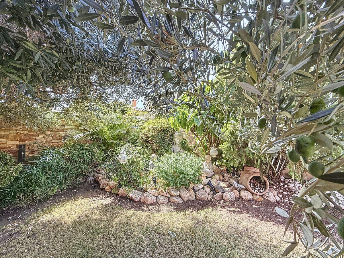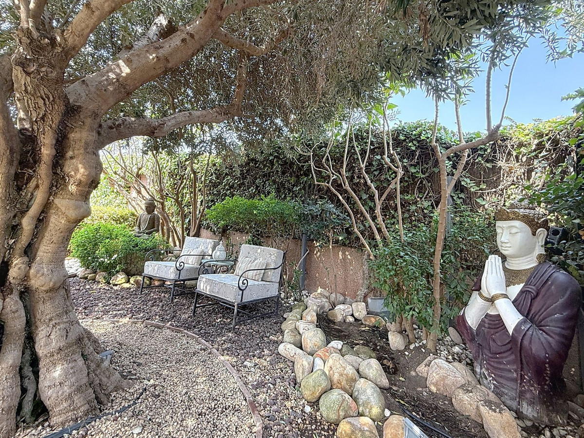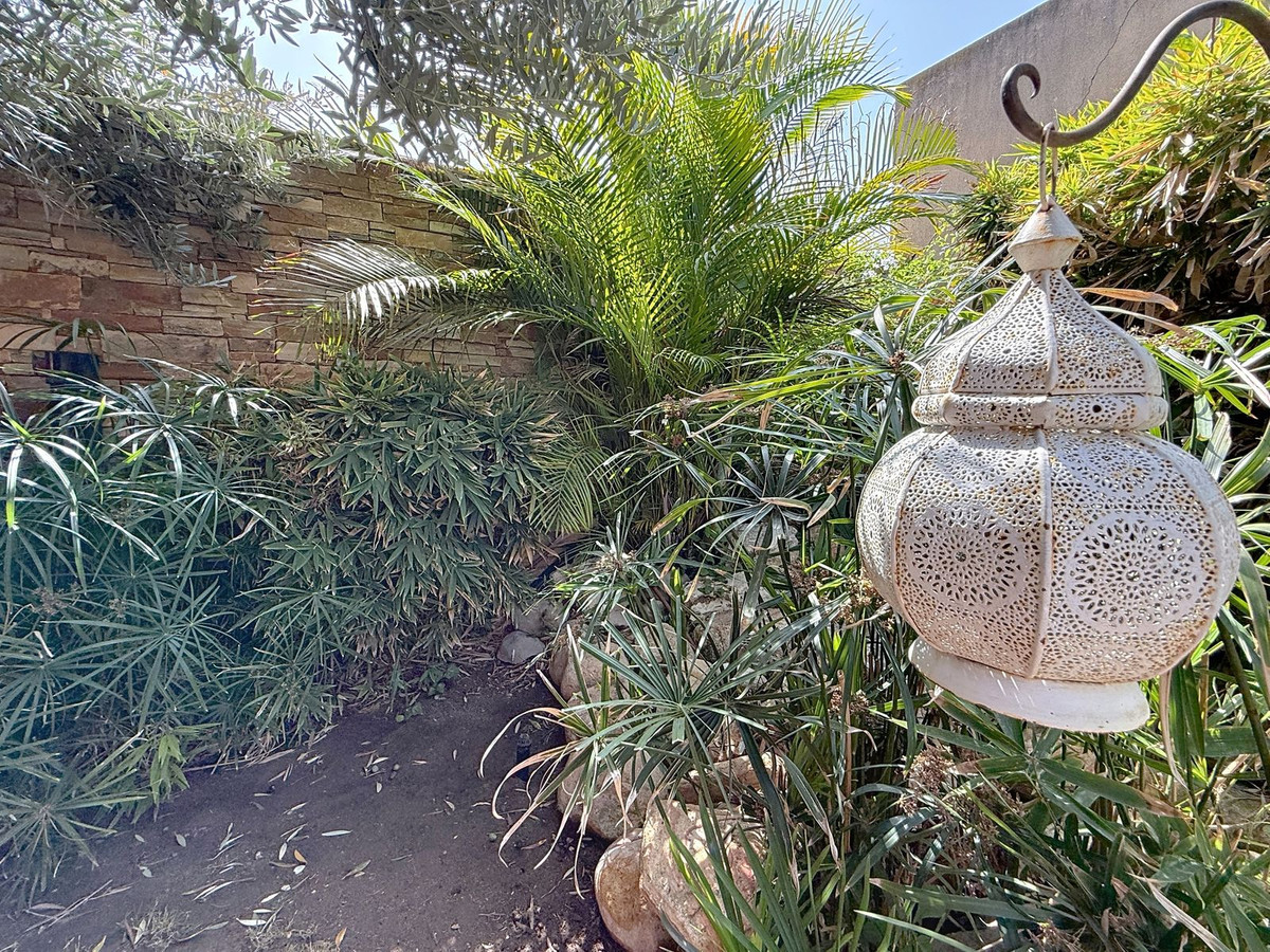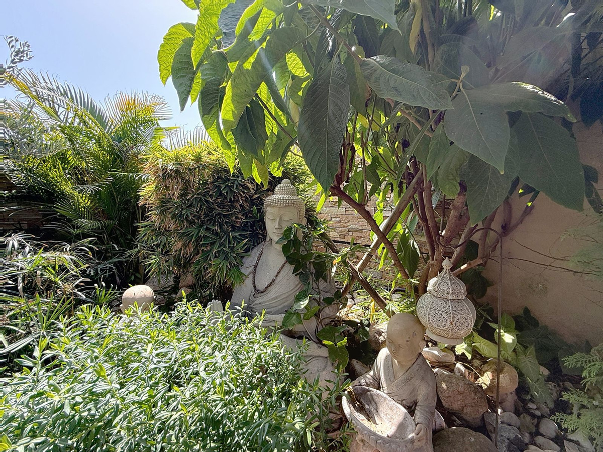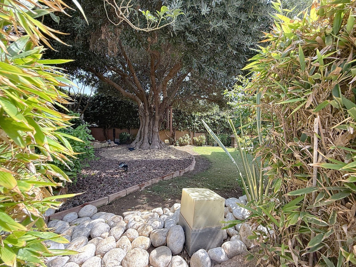 Fra det øjeblik du træder ind gennem den private port, omfavnes du af en følelse af ro. Haven er en verden for sig selv: et århundredgammelt oliventræ som vogter, Buddha-detaljer der skaber åndelig harmoni, skyggefulde terrasser og intime lounge-hjørner der inviterer til ren afslapning. I centrum ligger en 6x4 m pool med jacuzzi, omgivet af naturlig beplantning og skyggen fra modne træer – en sjælden oase på denne privilegerede beliggenhed.