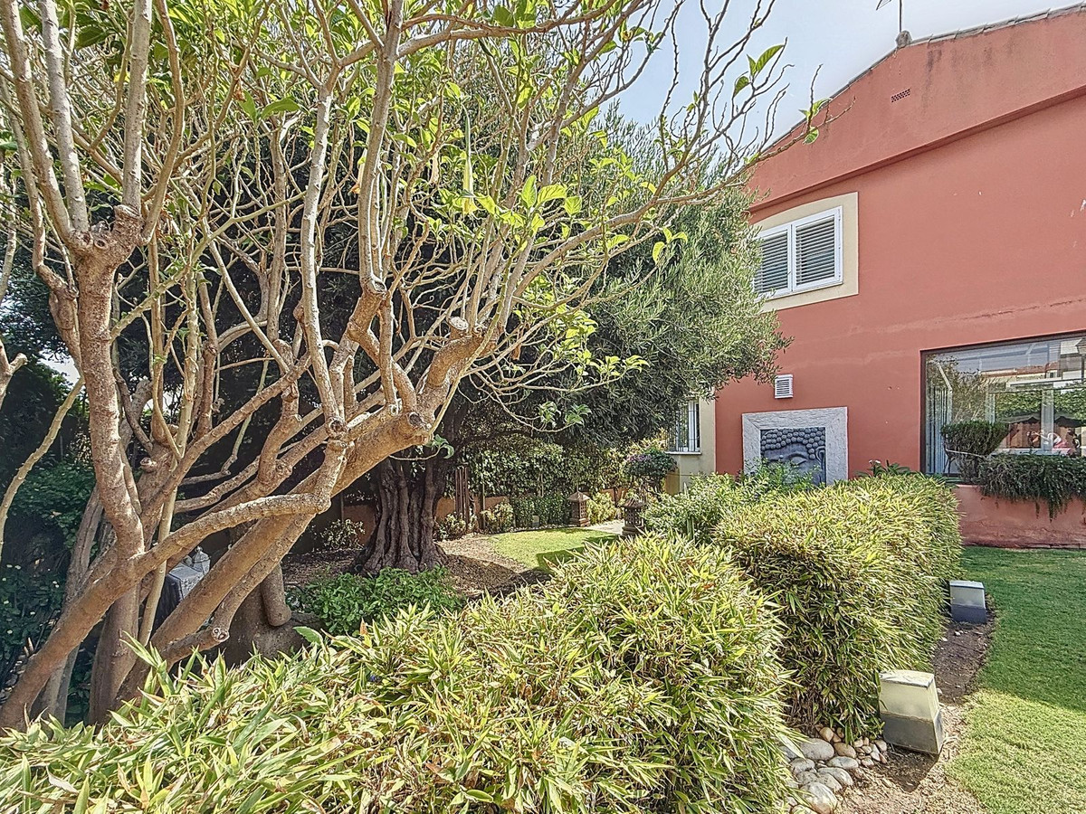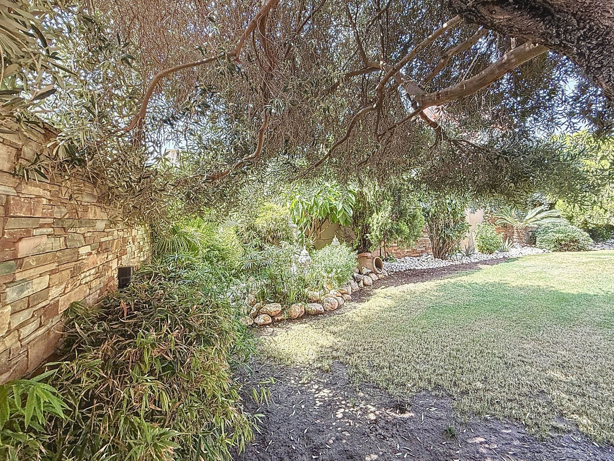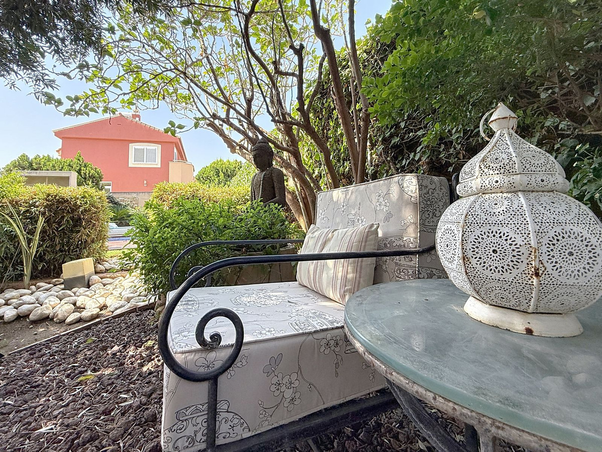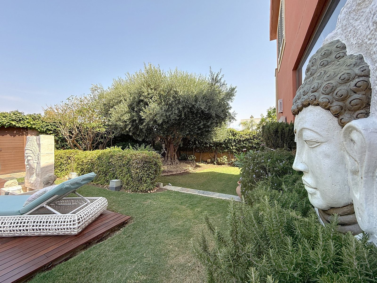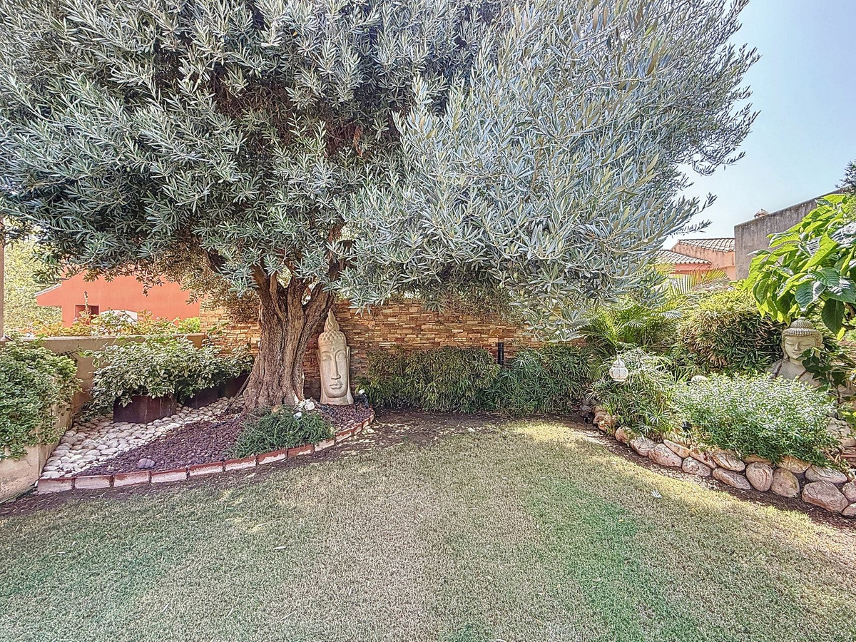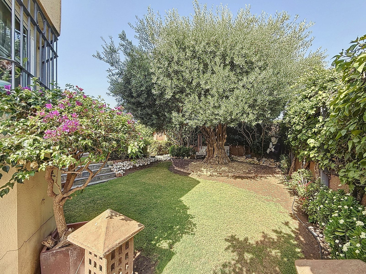 Fra det øjeblik du træder ind gennem den private port, omfavnes du af en følelse af ro. Haven er en verden for sig selv: et århundredgammelt oliventræ som vogter, Buddha-detaljer der skaber åndelig harmoni, skyggefulde terrasser og intime lounge-hjørner der inviterer til ren afslapning. I centrum ligger en 6x4 m pool med jacuzzi, omgivet af naturlig beplantning og skyggen fra modne træer – en sjælden oase på denne privilegerede beliggenhed.
