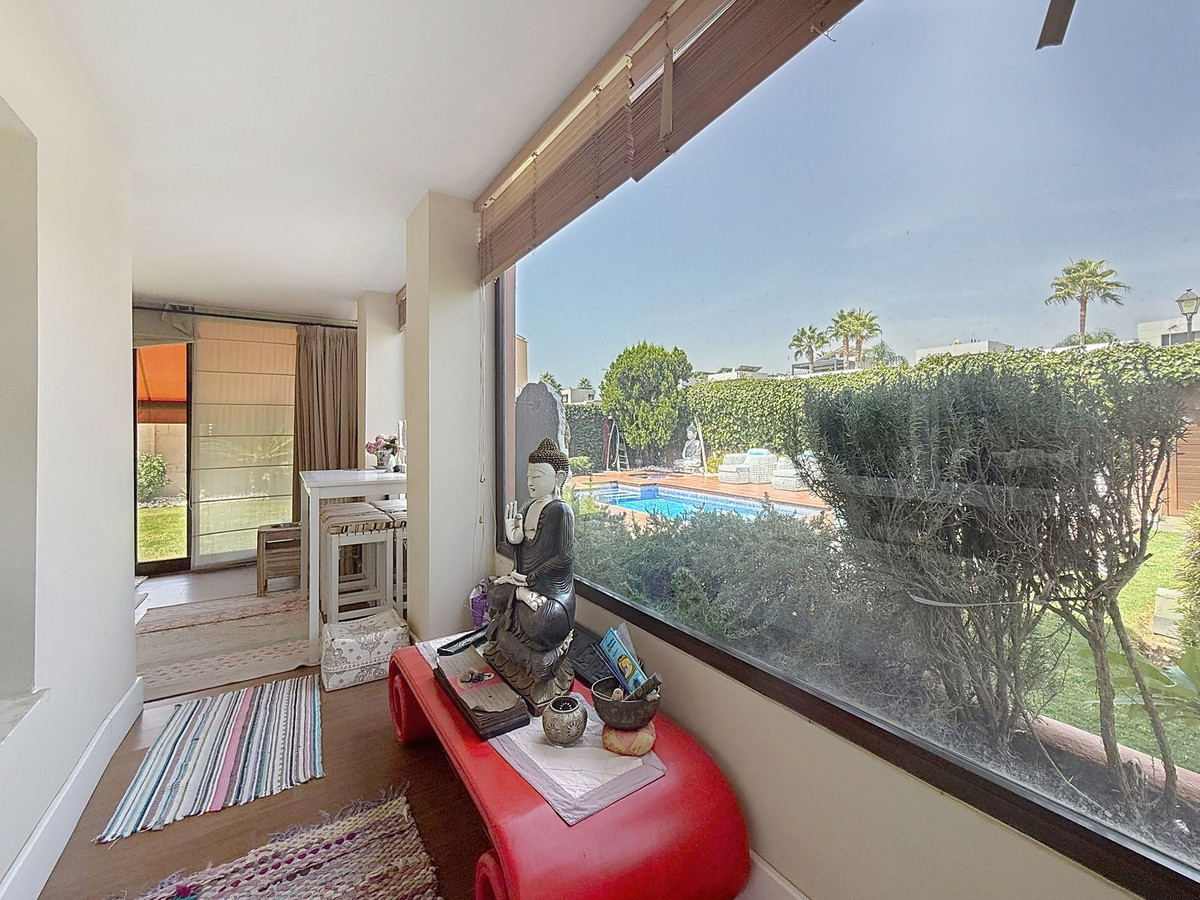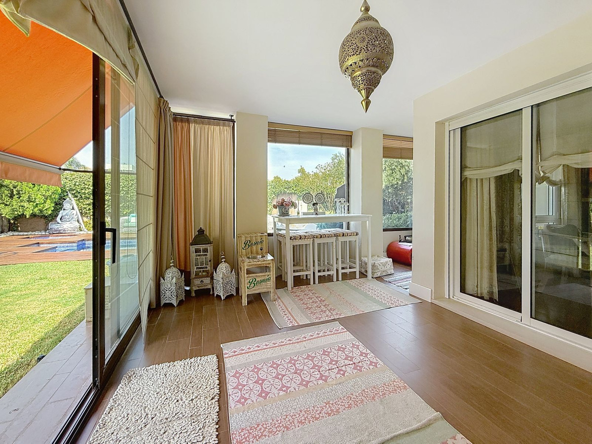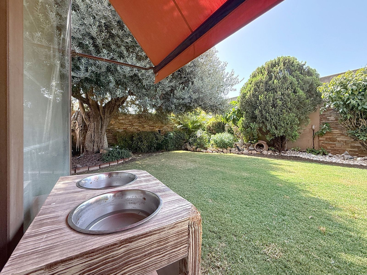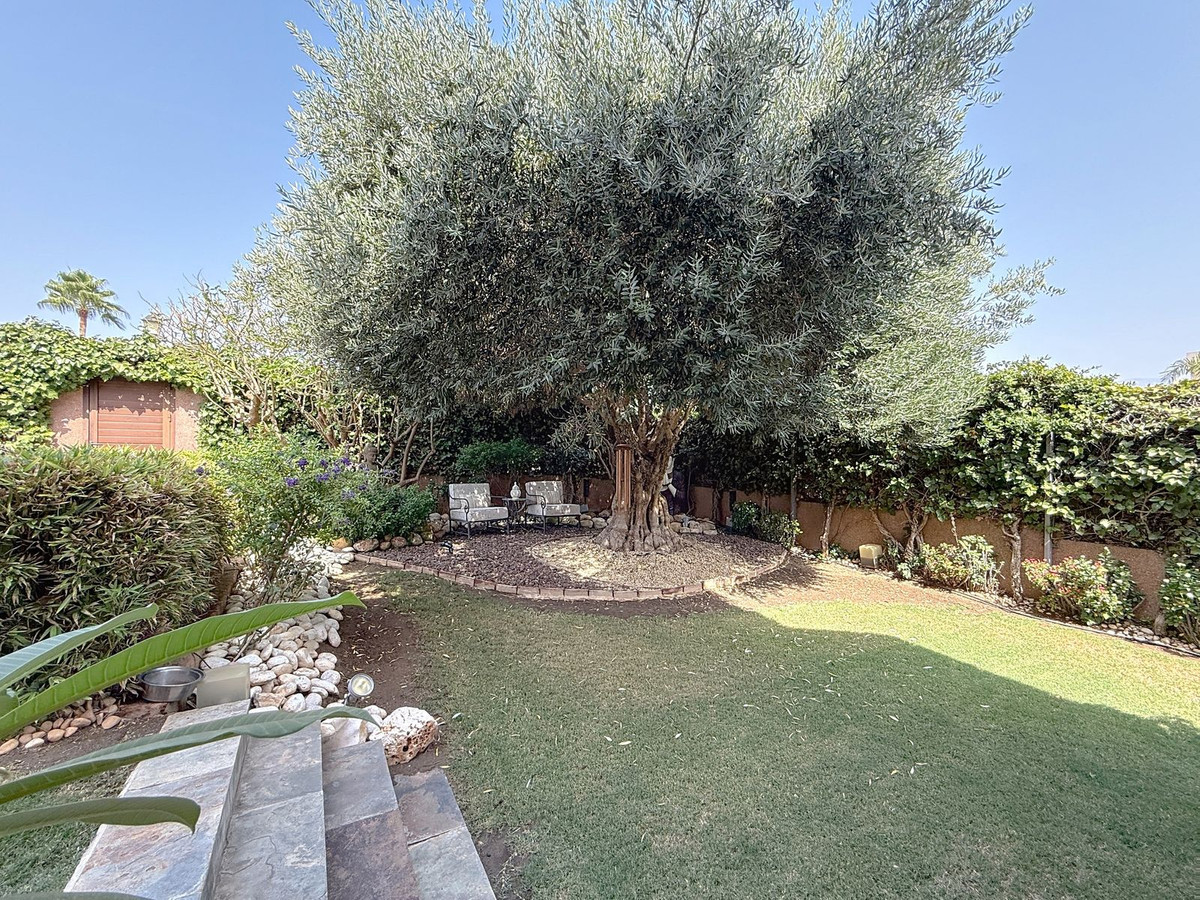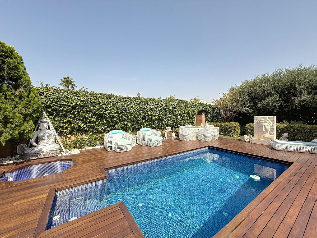 Fra det øjeblik du træder ind gennem den private port, omfavnes du af en følelse af ro. Haven er en verden for sig selv: et århundredgammelt oliventræ som vogter, Buddha-detaljer der skaber åndelig harmoni, skyggefulde terrasser og intime lounge-hjørner der inviterer til ren afslapning. I centrum ligger en 6x4 m pool med jacuzzi, omgivet af naturlig beplantning og skyggen fra modne træer – en sjælden oase på denne privilegerede beliggenhed.