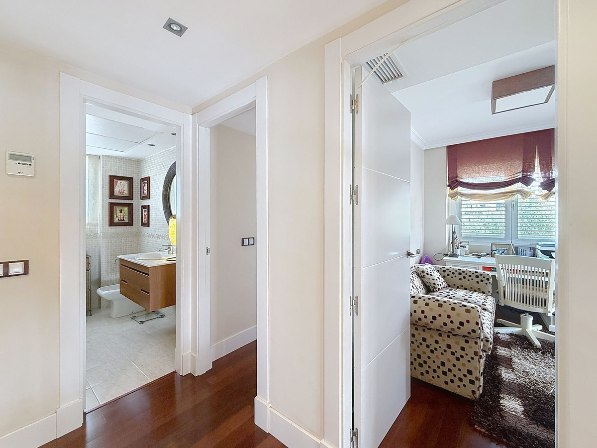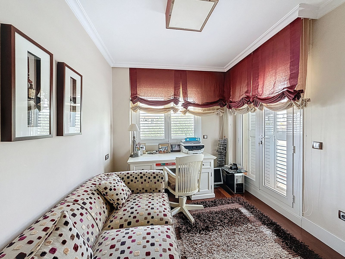 På førstesalen finder man soveafdelingen med tre rummelige værelser, herunder en fredelig master suite med eget badeværelse. Et andet gæsteværelse med fuldt badeværelse samt et tredje værelse, der i øjeblikket anvendes som kontor, sikrer komfort for både familie og gæster. Et tilstødende rum – nu brugt som walk-in garderobe – kan let omdannes til et fjerde soveværelse eller et privat fristed.
