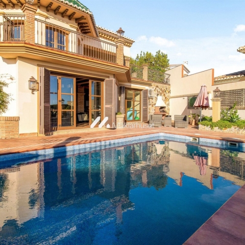 En individuel villa på 260 m² beliggende på en 505 m² grund, placeret i et af byens mest eksklusive boligområder, kun ti minutters gang fra havet, strandpromenaden og alle daglige bekvemmeligheder.