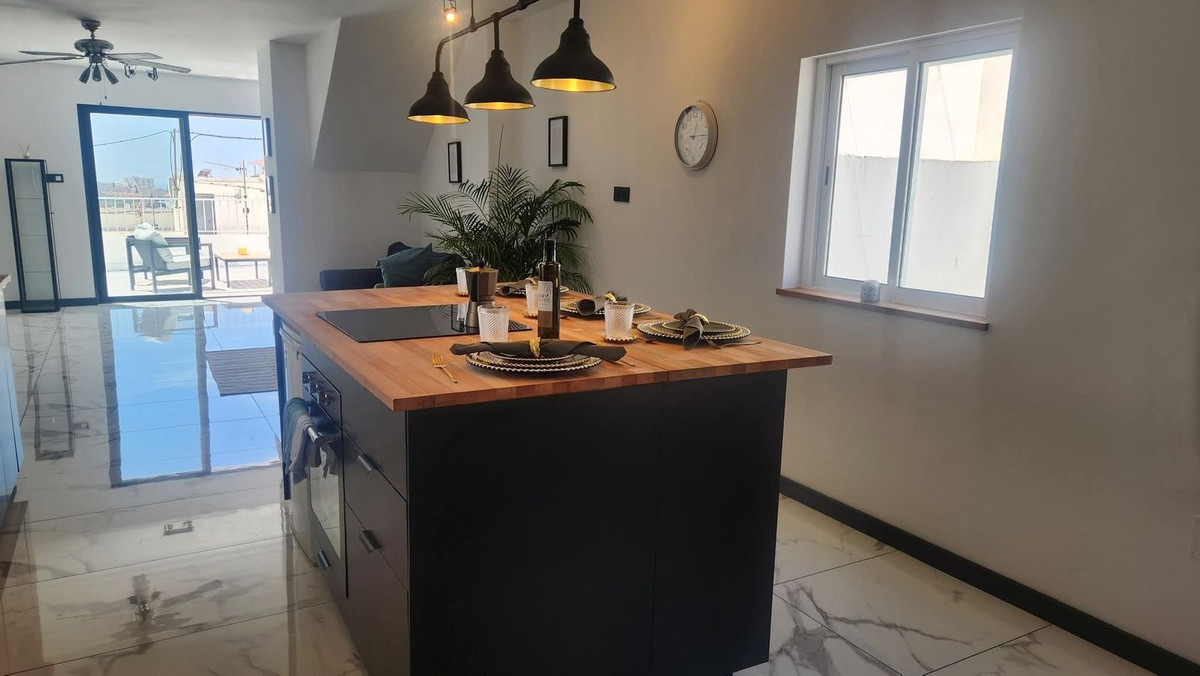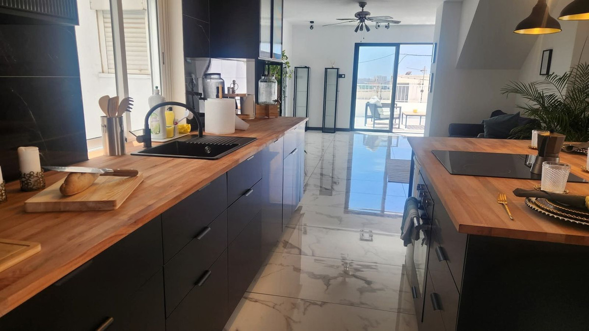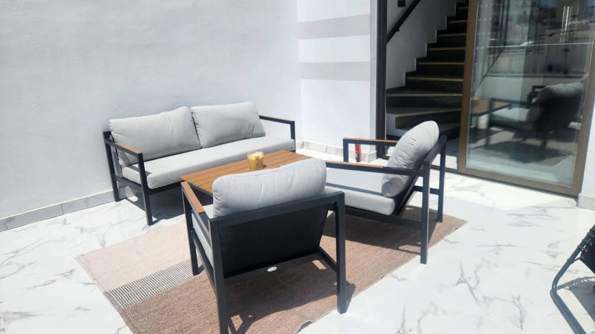 3 bedrooms, 3 bathrooms, a large terrace with views of the castle, the sea, and the entire town