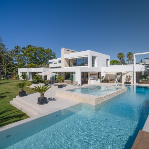 Private parking is conveniently located at the side of the house, and amenities such as a supermarket, pharmacy, and restaurants are only 3 km away, while Estepona's lively marina area and new promenade are just 5 km away. This villa combines modern luxury, breathtaking views, and an unbeatable location – a dream for anyone wishing to enjoy the Costa del Sol lifestyle all year round.