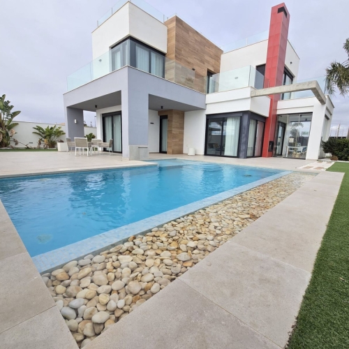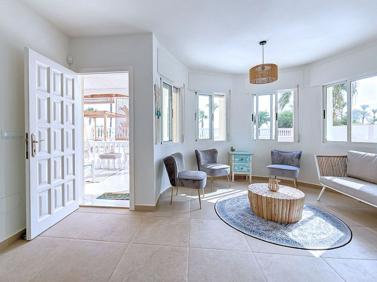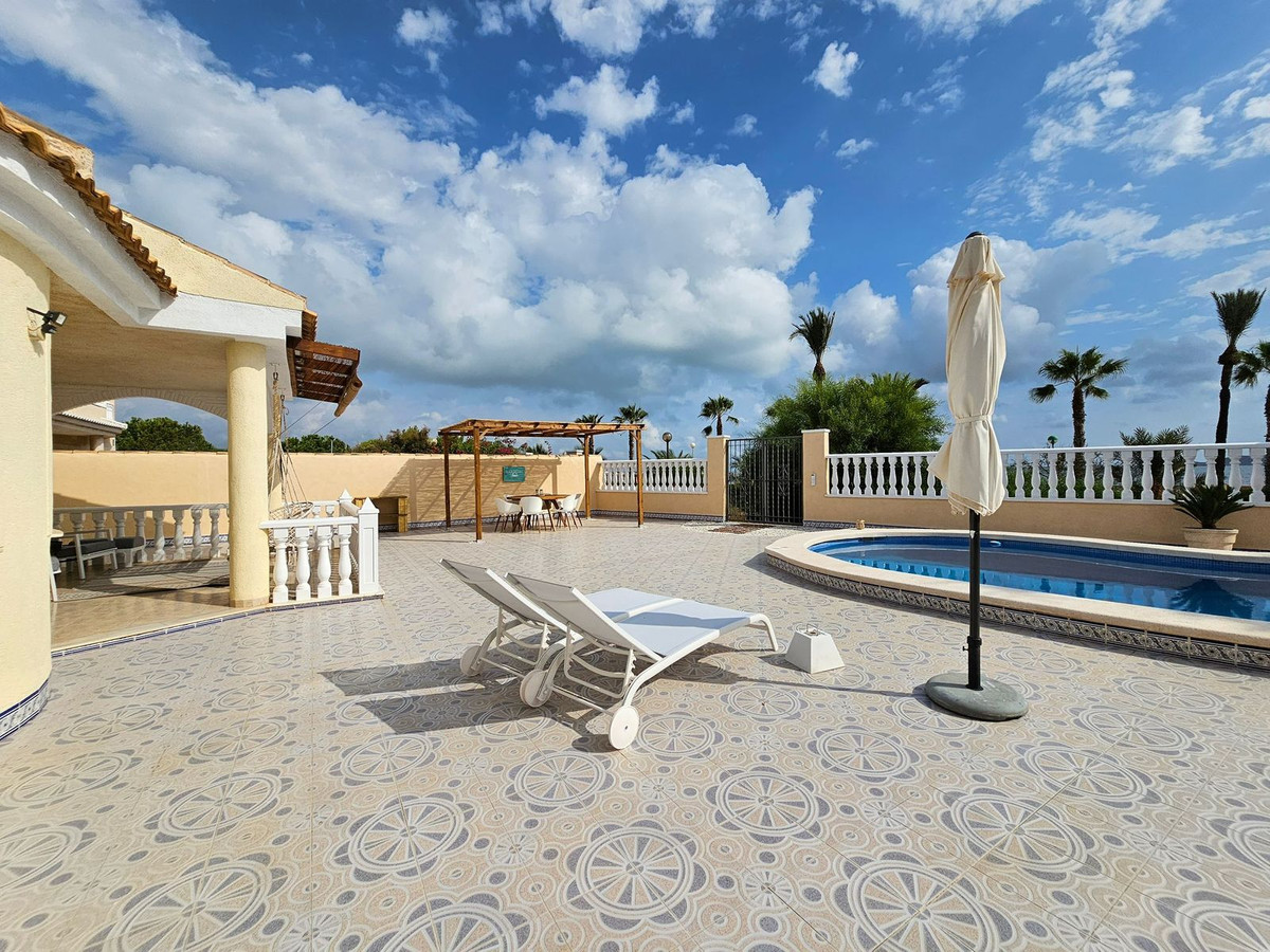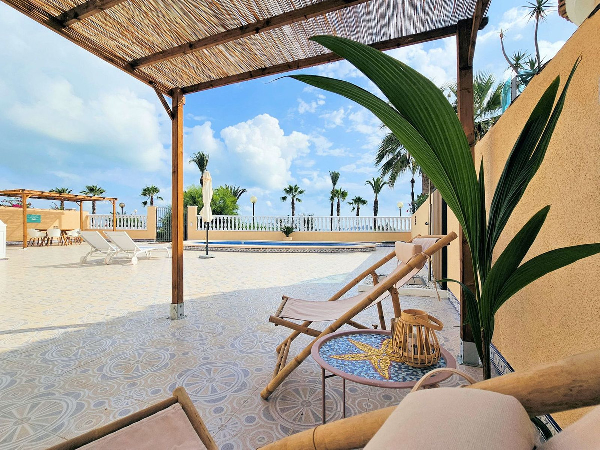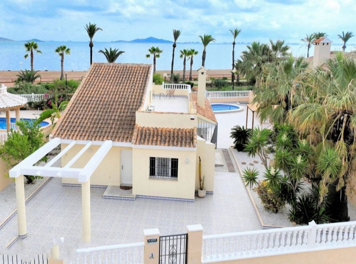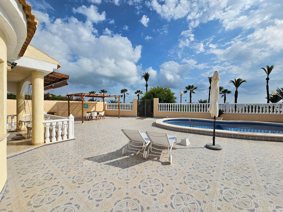 WOW !!!! Take a look at this amazing Frontline Villa directly on the beach in Los Urritias, Los Alcazares and within walking distance to several bars and restaurants. The villa offers four spacious bedrooms with wardrobes, three bathrooms, a living/dining area, and a fully fitted kitchen. It also includes a separate studio with a bathroom and kitchenette. Outside, you'll find large terraced areas, a private swimming pool, storage, and well-maintained gardens.