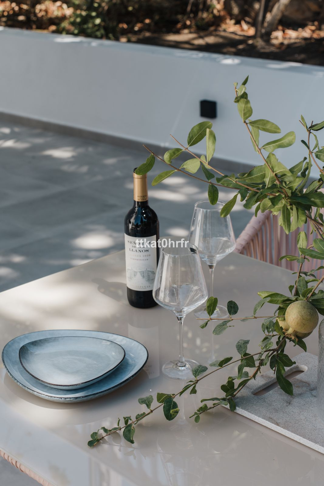 With its southwest orientation, the villa is bathed in natural light throughout the day, creating a warm and inviting atmosphere both indoors and out. From the partially elevated position, you can enjoy serene and partial views of the sea while still being just a short stroll from a wide selection of restaurants, cafés, and supermarkets.