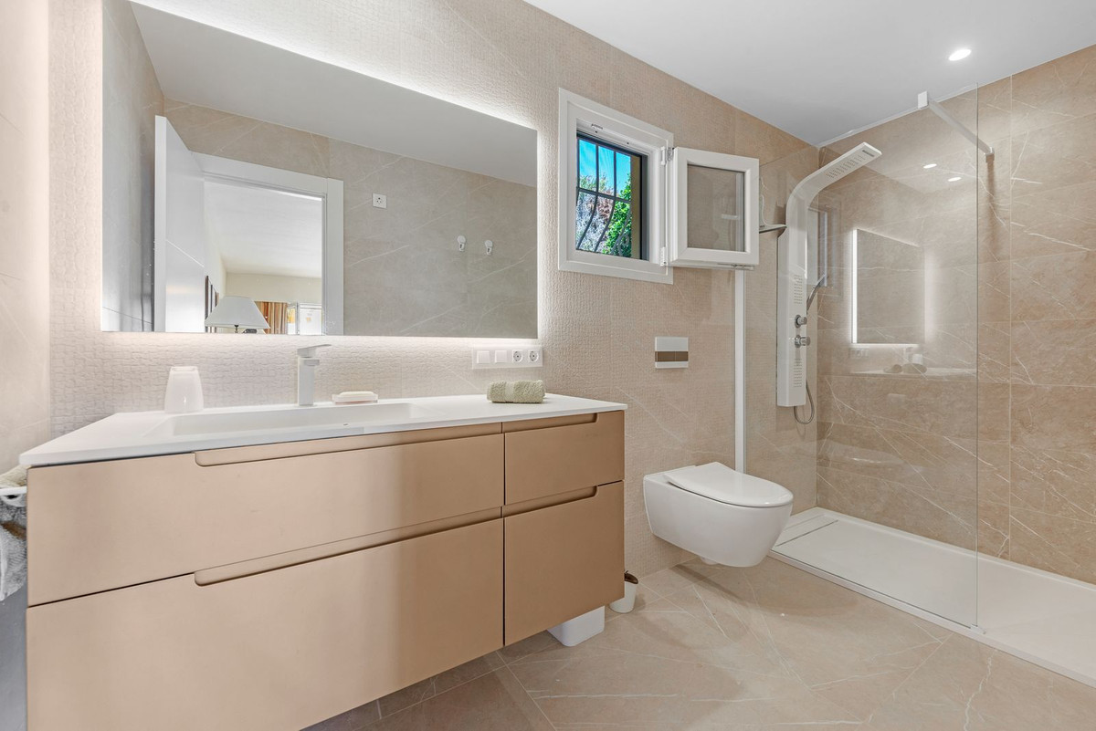 Perched on an elevated corner plot, Villa Mirabelle offers breathtaking views of the Mediterranean Sea, coastline, and mountains. The beaches of Playa El Asparalló, Playa La Caleta, Playa El Paraíso, and Playa Bol Nou are just a short walk or drive away, with El Paraíso beach directly visible from the terraces. The renowned five-star Montiboli Hotel is also within walking distance.